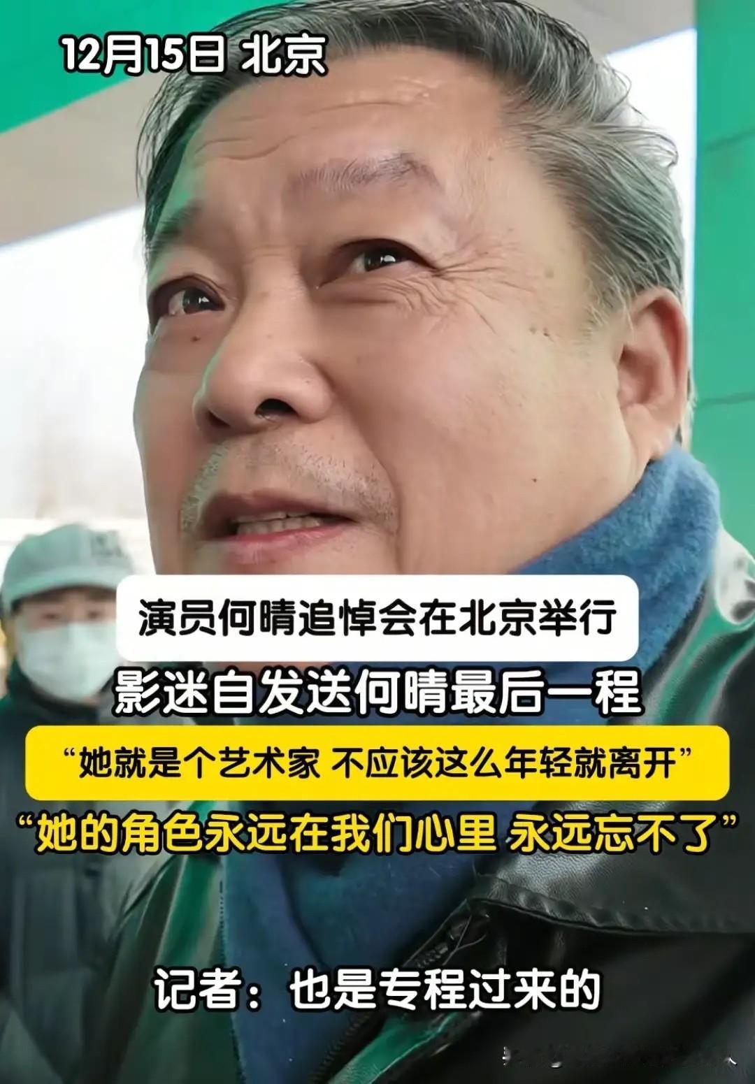 在北京昌平殡仪馆,当何晴的遗体被推出来的那一刻,在场所有人的心都跟着揪了起来。 这场告别仪式的大厅只对亲友开放,可里面还是挤满了人,亲友和粉丝们都捧着鲜花,来送她最后一程。 有专程赶来的粉丝说:“何晴就是一位真正的艺术家,可惜走得太早了。她这么年轻就离开,实在太让人惋惜。她留下的那些鲜活形象和经典角色,会一直刻在我们心里,永远忘不了。” 没能进入大厅的人,在外面远远看着盖着白布的遗体,也算是以自己的方式送别了她。 此刻的告别大厅里满是亲友的哀思,大厅外也站着不少自发前来送别的群众。 在我看来,能被这么多人记挂和缅怀,正是因为何晴用扎实的演技留下了深入人心的作品,这份观众缘,就是对一个演员最好的认可。