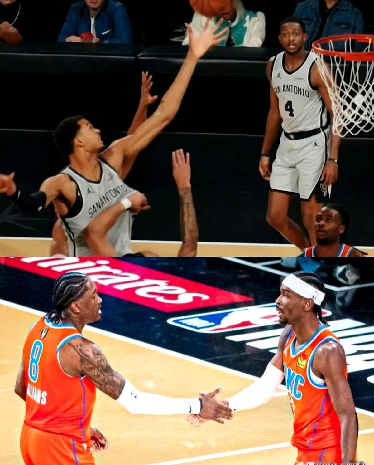 雷霆时常3分断电,这时候往往用冲框打崩对手,但是这一次,连切特都被帽了,导致进攻端便秘
