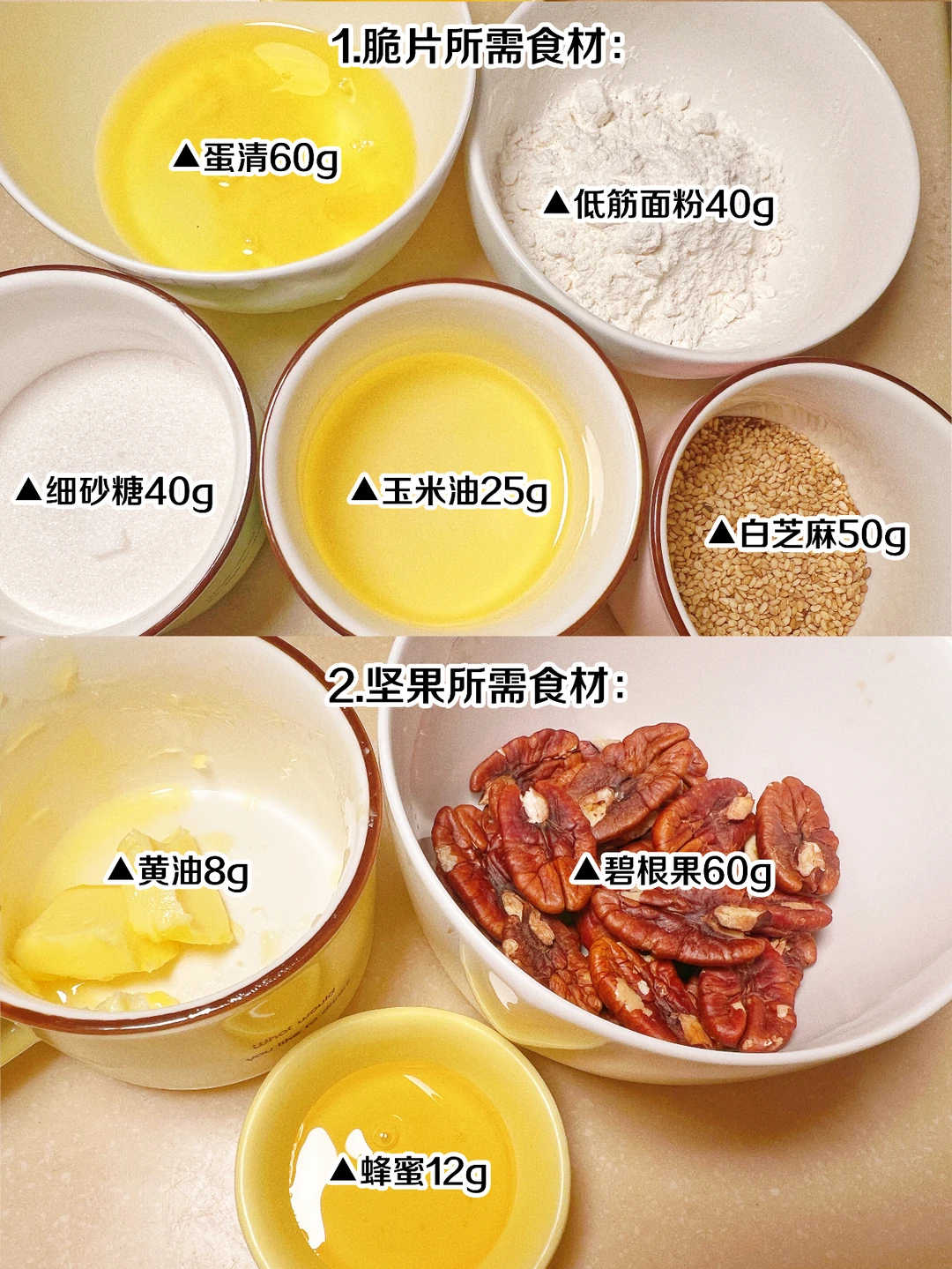 黄油8g,蜂蜜12g,碧根果60g