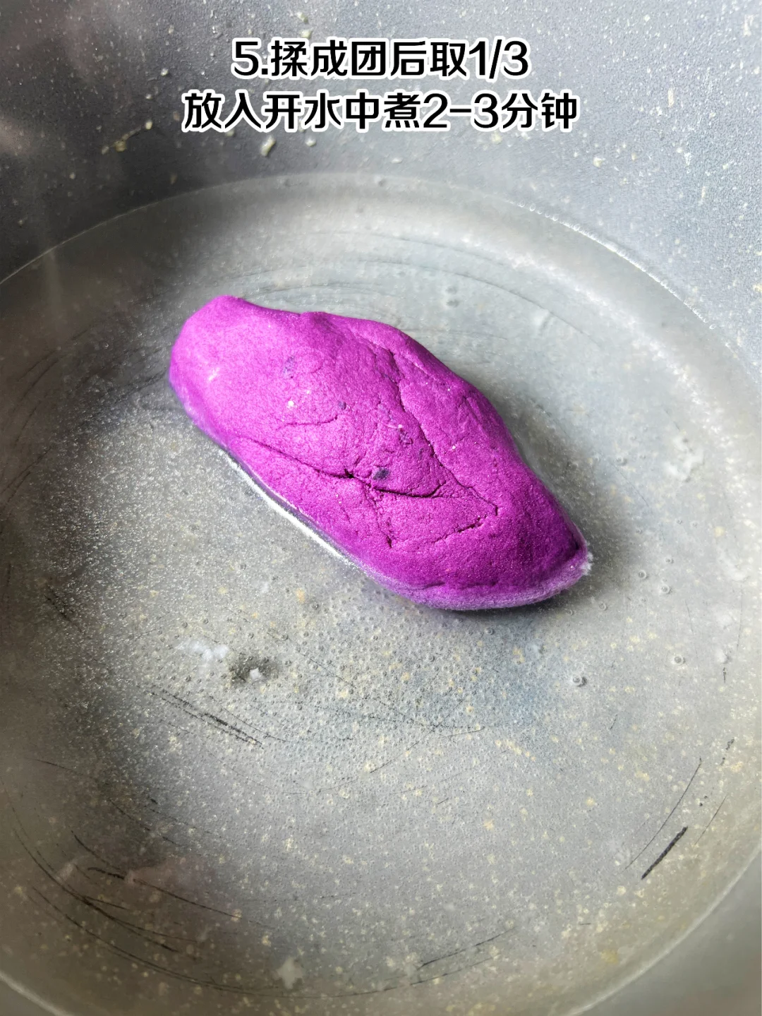5、揉成团后取1/3放入开水中煮2-3分钟