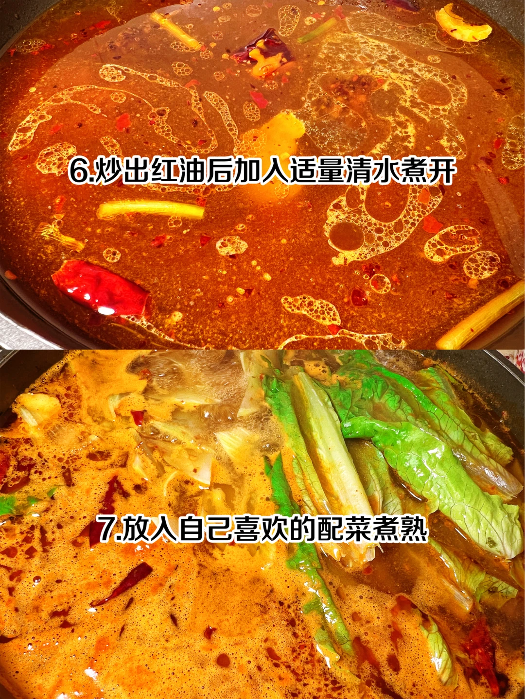 6、炒出红油后加入适量清水煮开