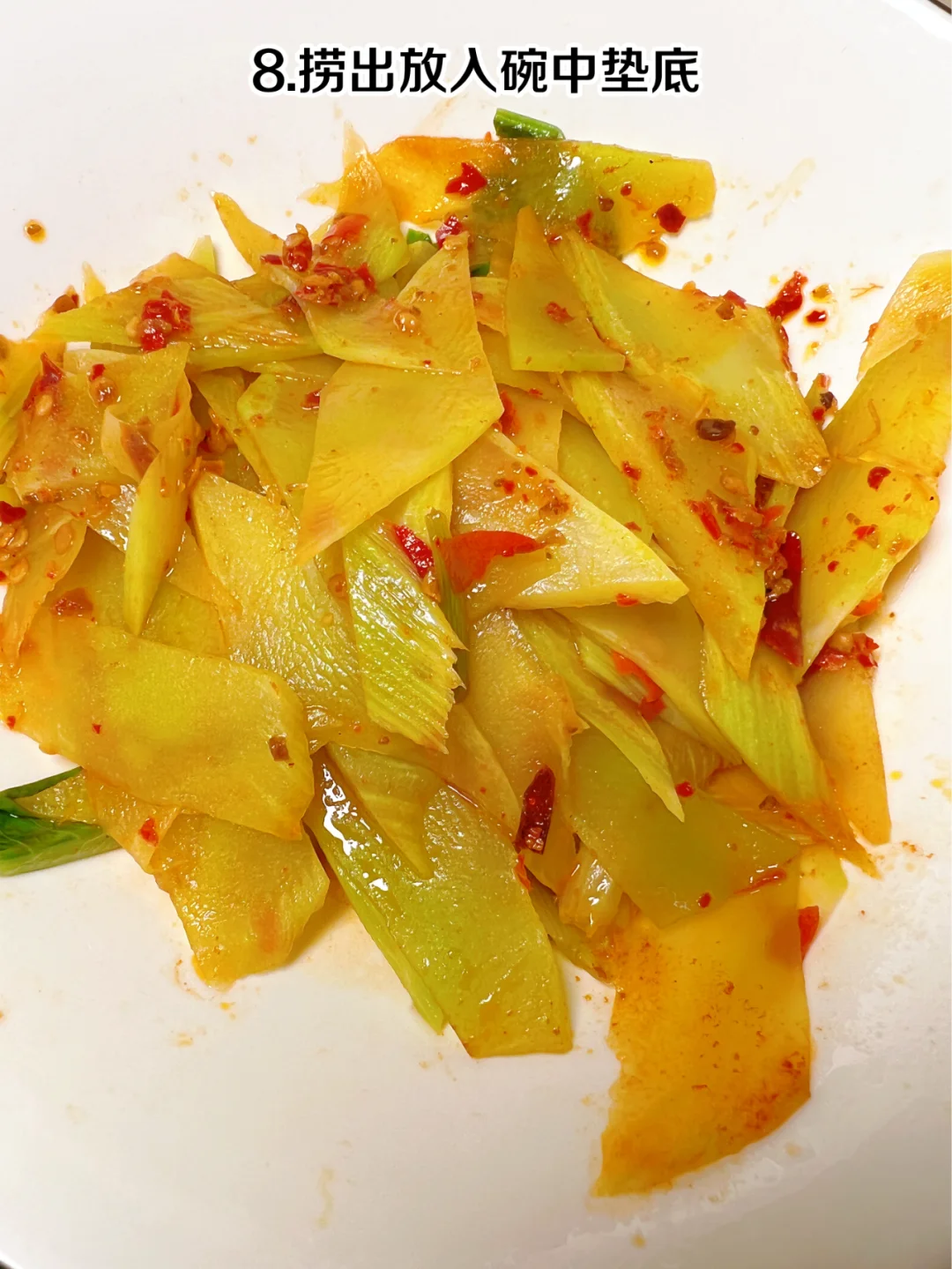 8、捞出放入碗中垫底