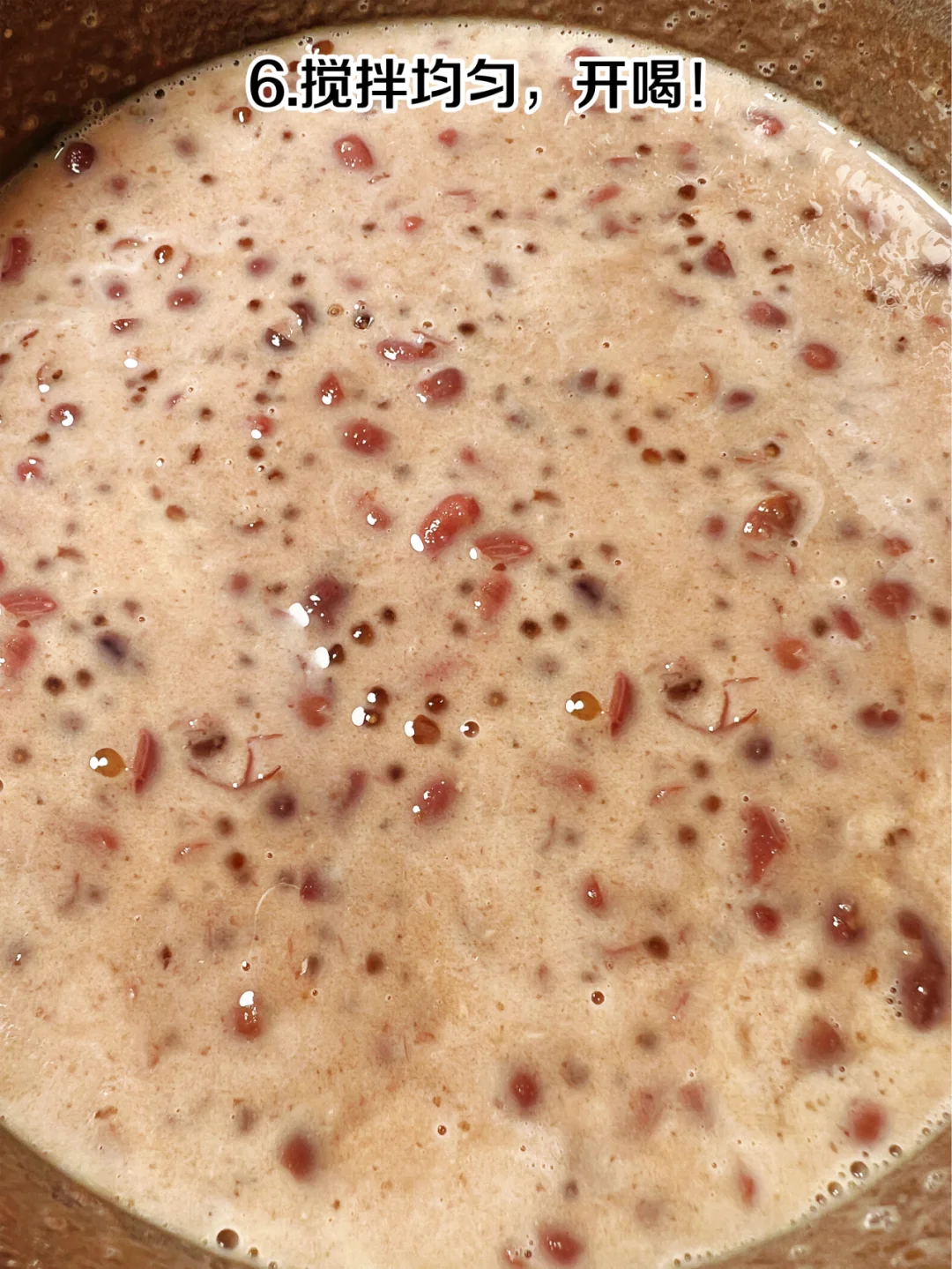 自制神仙饮品 红豆西米露 女孩纸们一定要多喝这款红豆西米露哦[飞吻R]好喝又养颜 [派对R]步骤: 1、红豆提前泡四个小时 2、泡好的红豆倒入锅内 3、加开水煮20分钟 4、加入西米再煮20分钟后焖10分钟 5、加入红糖、牛奶 6、搅拌均匀,开喝 把冬日的奶茶都换成它吧[萌萌哒R]口感沙沙糯糯的,奶香浓郁,好喝到爆! 信我...赶紧试试吧[赞R][赞R][赞R]