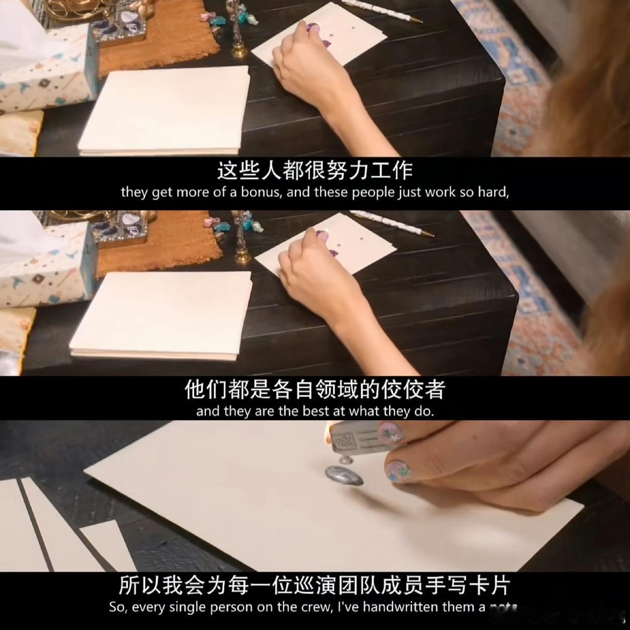 重新定义巨星担当,霉霉的14亿奖金:是回报,更是最真诚的看见! 泰勒·斯威夫特为其“时代巡演”团队发放总额1.97亿美元的额外奖金,覆盖卡车司机、灯光师等50余类超500名工作人员,连第三方外包人员也未被遗漏。 奖金按岗位梯度分配,卡车司机每人获10万美元,伴舞等岗位按贡献得5-20万美元不等,同时她还为每位成员手写感谢信,精准提及个人付出细节。 当团队成员得知奖金数额时集体"倒吸凉气",随后掩面痛哭、激动拥抱,有人反复核对支票数字,甚至有人惊喜到需使用吸入器平复情绪。 这种能够“被看见”的付出真的不多见,她看得到所有人的付出,所以她愿意为这份付出买单,没有领导独吞的猫腻,也不是平均主义的敷衍,而是按岗位重要性和工作时长梯度分配,让每个默默付出的人都能共享成功果实。 这份诚意,不止是娱乐史上的一次创举,更是给所有“幕后英雄”的一封公开信——舞台的光芒从不是某个人的独角戏,每一份熬夜抢修的坚守、每一次风雨无阻的奔赴,都值得被沉甸甸地回应。 当其他明星还在靠“人设”博眼球时,霉霉用14亿奖金和手写感谢信,把“尊重”二字刻进了行业骨血里。她让我们看到,真正的顶流从不是高高在上的孤星,而是甘愿为身边人点亮整片星空的引路人。