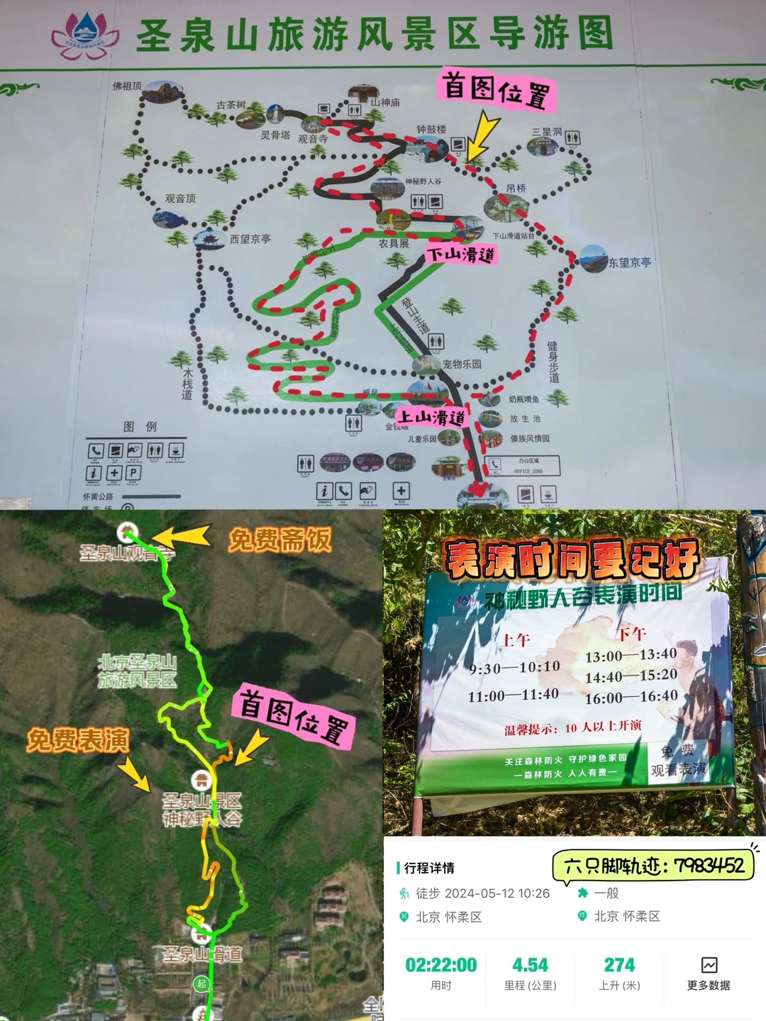 周末小兔儿又带着雪球进山啦⛰️ 今天分享一条适合初夏的0难度森系步道🌲 小众、人少👟适合老人低幼全家出行👏🏻 老规矩🗺️地图路线攻略做好啦~直接拿走抄作业‼️ . 🌟推荐理由🌟 ✔️京郊1h,森林覆盖率高,天然大氧吧 ✔️路线丰富,路况好,满足不同需求 ✔️森林滑车,野人表演,游玩有乐趣 ✔️免费打山泉水,免费品尝斋饭泉水面 . ✅必打卡景点✅ 🔸东/西望京亭:270度俯瞰市区美景 🔹钟鼓楼:整点敲钟 🔸野人谷:免费看佤族阿力精彩表演 🔹观音寺:斋堂可领免费炸酱面或馒头 🔸森林滑道:体验丛林滑车 ❌吊桥修缮,不可通行 . 👟详细徒步攻略👟 🟡低幼版 ➡️全程1h,徒步1km,基本不用走 📍大门-游乐区-坐滑车上到野人谷-钟鼓楼-坐滑车下山-门口 . 🟠中级版(我们走的‼️) ➡️全程2.5h,徒步4km,爬升274米,有徒步有滑道,乐趣多 📍大门-游乐区-右转走健身步道-东望京亭看景-野人谷表演-钟鼓楼-观音庙吃斋饭-原路返回下山道-体验滑道下山-门口 . 🔴高配版 ➡️全程4h,徒步6.5km,爬升500米,全程徒步,打卡全部景点 📍大门-游乐区-东望京亭-野人谷-钟鼓楼-观音寺-佛祖顶-观音顶-西望京亭-门口 . 👣 经常带雪球户外徒步,现在的他正是足部发育的黄金时期,我为他选择江博士儿童鞋,搭配的全接触鞋垫能够平均分散足底压力,提升舒适度,舒缓足部疲劳。加硬后跟杯,能够稳定足型,保护脚踝,户外跑跳也不怕崴脚。夏季的镂空设计可以有效排汗,让孩子更自在的进行户外运动 . ⚠️实用信息⚠️ 🌈怀柔区圣泉山旅游风景区 💡6:00-18:00 💰门票35,含斋堂泉水面一份或五福禅馒一份 🏷️京津冀一卡通免费,不含斋饭,单点19.7 🅿️停车费20/天🚻有卫生间、有补给小卖部 🌲森林滑道:单程50,往返80,第二次半价,1.2以下免费 . 我是杨小兔儿🐰 爱旅行、爱分享、擅长做实用攻略✏ 更多宝藏旅行好去处🌲欢迎去主页看看🏷 .