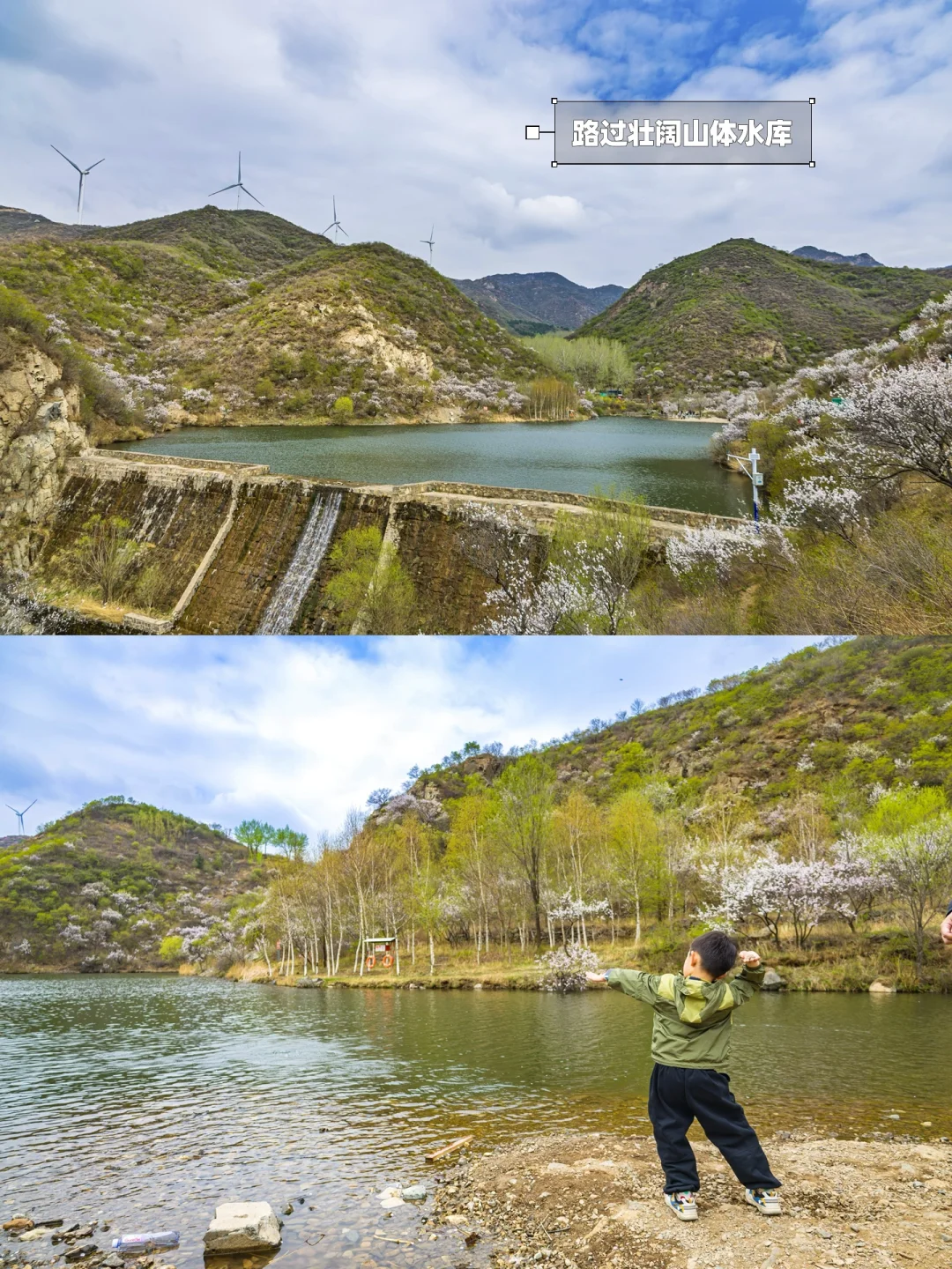 🌟入口步行600米至龙潭水库,有观景平台,可下到浅滩玩水,路上可以看到山顶的大风车。适合低幼、老人和单纯赏花打卡