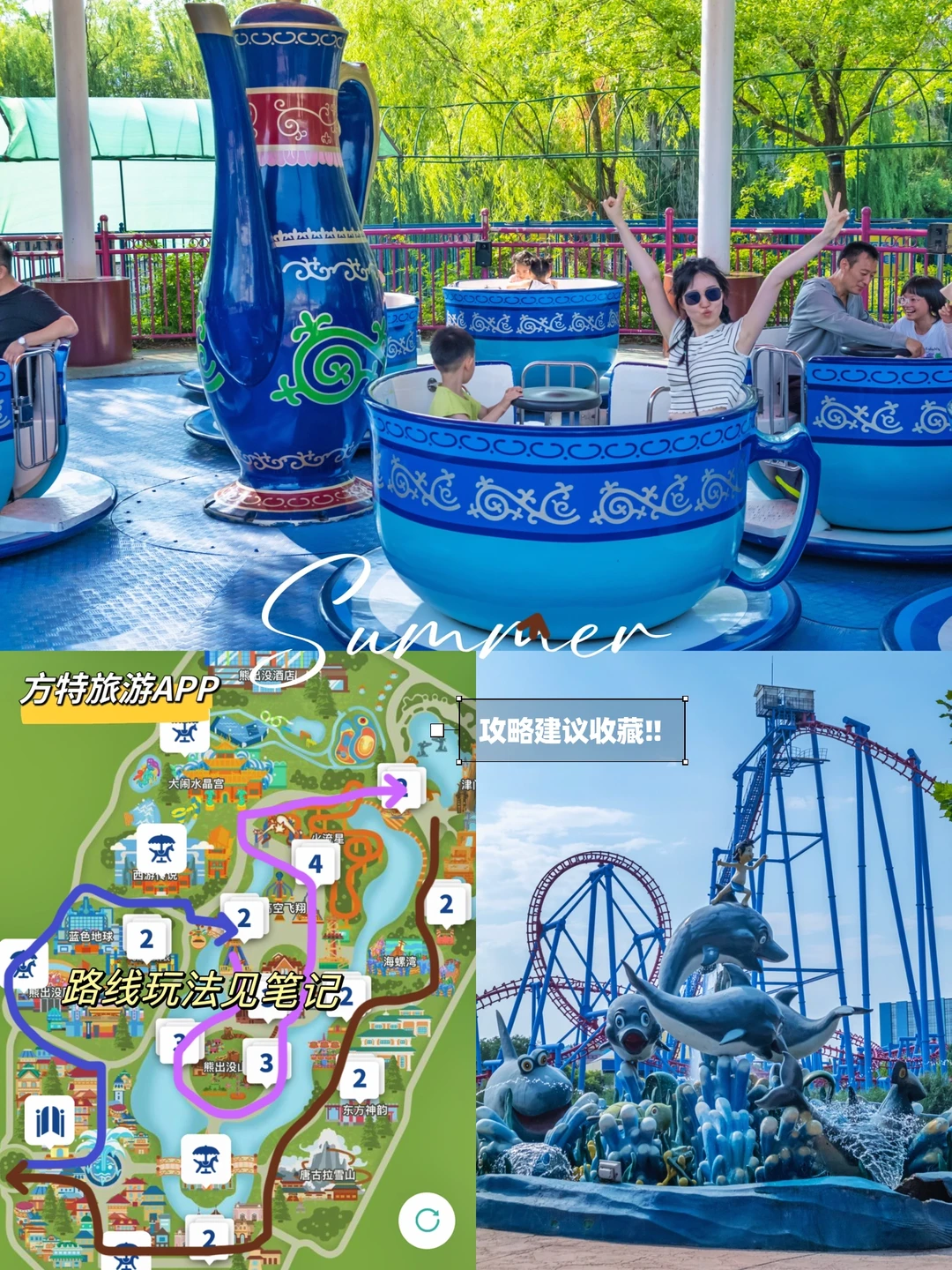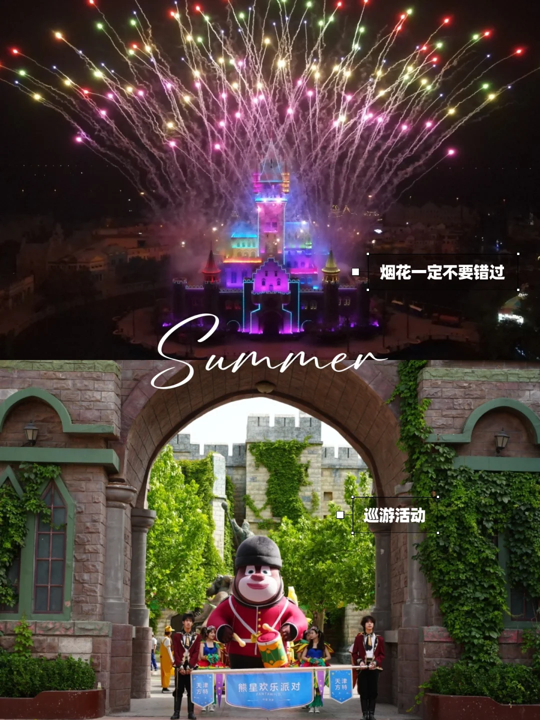 暑假到啦~亲测比环球迪士尼更适合学龄前儿童的天津方特‼️现在正赶上九周年店庆🎉这份保姆级攻略给大家整理好啦✅建议收藏‼️ . 🌈天津方特欢乐世界 📍天津市滨海新区 💡9:00-21:00 🧭导航搜索天津方特,北京城区开车过来1.5h 🅿️超大停车场,20元/天 💰大人280,1.1m-1.4m儿童160,夜场199(16:00后入园) ⏰推荐游玩时间:乐园很大,建议玩一整天 . ✅亲子路线推荐✅见图二✅ ▪️进园左转先逛夏日狂欢季市集区,打卡拍照逛商店 ▪️继续左侧先去人流较少的【室内科普】项目聚集区避开人流和酷暑 ▪️室内玩完接近中午,顺路可吃午餐 ▪️进入中心岛【熊出没山谷低幼活动区】,适合小宝宝玩 ▪️北行至【大童or成人游乐区】➡️项目见下文 ▪️出中心岛北出东区从北向南依次玩到大门口 ▪️正好绕到方特城堡,晚上有烟花,结束出园 . 🎪方特游乐项目全攻略🎪 ✅【室内科普】 🔎游乐或5D电影,室内避暑 ➡️ 熊出没历险,西游传说,大闹水晶宫,蓝色地球,海螺湾,飞跃极限,魔法城堡,东方神韵 🔴时间有限最推荐:海螺湾,蓝色地球 . ✅【熊出没山谷低幼区】 🔎全是小宝宝玩儿的 ➡️跳伞塔,转转杯,小过山车等,柯基跑跑车是小过山车适合全家人 . ✅【大童成人区】 🔎 疯狂刺激,尖叫不断 ➡️津门大峡谷夏日清凉解暑,唐古拉雪山类似矿井过山车,火流星是最硬核刺激的翻滚过山车,还有海盗船,跳楼机等 . ✅【烟花秀】 🔎 最浪漫的夜空,是天津独有的烟花表演 ➡️在方特城堡,晚上8点多开始 . ⚠️温馨提示⚠️ ✔️入园前一定下载方特app,可查看地图、设施位置、排队时长等,实时定位 ✔️园区内超1.1m幼儿除大项目外基本可以玩所有项目,四五岁小朋友在这儿会开心死‼️小宝宝可以去中心岛低幼区 ✔️园区可租电瓶车、儿童推车,也可拉露营车 ✔️园区可自带食品饮料,爆米花59全天无限续桶,饮料49可续杯2次,超值‼️ ✔️激流勇进1.2米以上才能玩,提前准备雨衣 ✔️旁边有方特水上乐园,+50元可以通玩 . 我是杨小兔儿🐰 爱旅行、爱分享、擅长做实用攻略✏️ 欢迎去主页看看🏷️