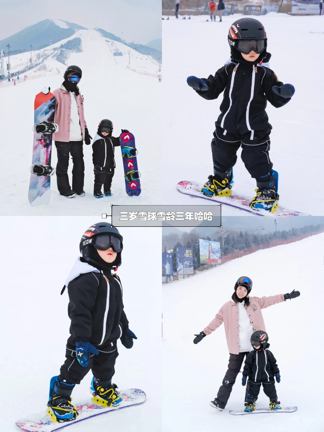 ➡️孩子滑的少、长得快,不建议购置太多装备,雪鞋雪板租雪场的就好