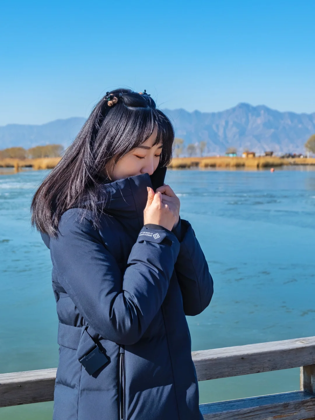 湖边风大,建议穿抗风性更好的外套,比如我最近买的今年新款的波司登长款防风羽绒服,采用 GORE-TEX公司的WINSTOPPER防风技术,据说只有防风性能好的面料才能提升羽绒服整体的保暖性,今天穿出来也确实感受到风不会钻进衣服。透气性也挺不错的,中午出太阳的时候运动稍稍有点热,也没有感觉到闷汗,整体来说暖和又轻便!买了WINDSTOPPER后才发现采用这款技术的新品棉服不少,比如诗诗穿的可隆,爱凌穿的波司登,怕冷的朋友可以冲啦