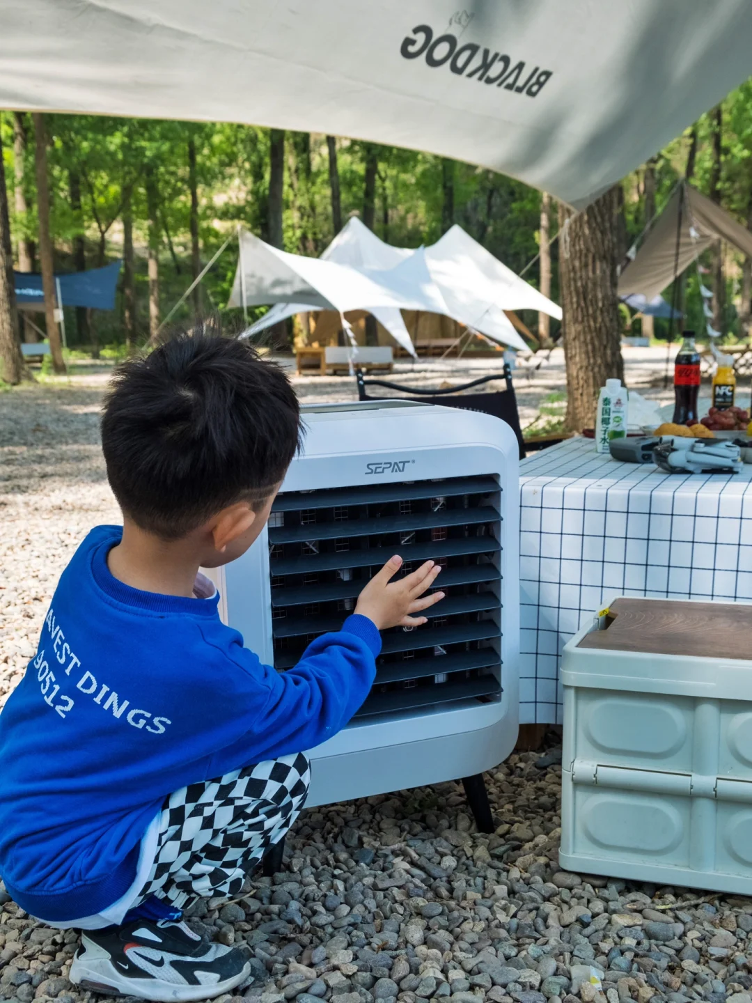 💨天气热的时候露营我会带上冷风机来给空气降降温,SEPAT这款充电冷风机特别方便,加水即可吹出清凉的冷风,解决了夏日露营的燥热,高低快拆脚架,适用于各种场景,自带USB接口还可以反向为手机充电,妥妥的露营好物