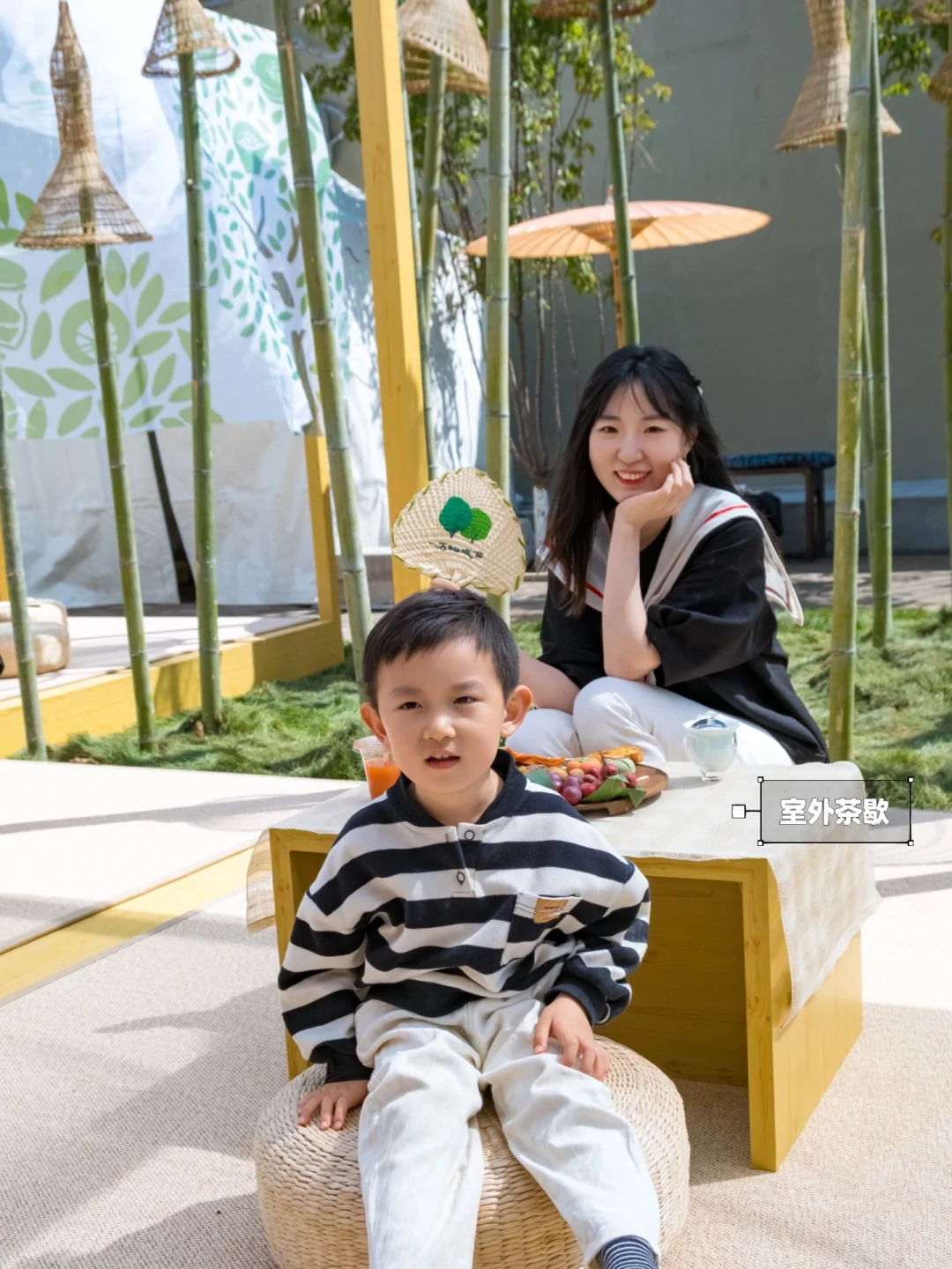 🍵在室外有一个仙气飘飘的饮茶休息区,可以在阳光下,坐在蒲团上,三五好友围在一起,就着茶点小饮一杯香茶,感受春日的美好