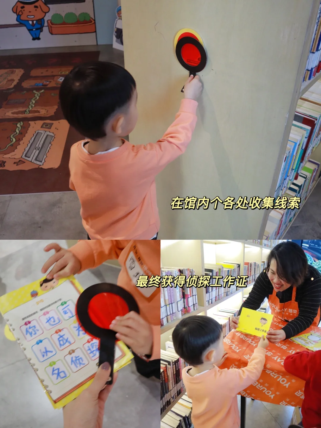 🔎每个小朋友都会化身小侦探,在老师的带领下破解一个个谜团,将书里的解谜形式带到线下,解谜成功会有小贴纸奖励鼓励小朋友,还会有亲子手工制作环节,活动形式很丰富。