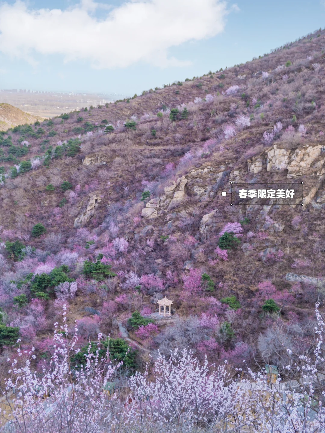 ✔️徒步穿行于满山的桃花中间,景色宜人