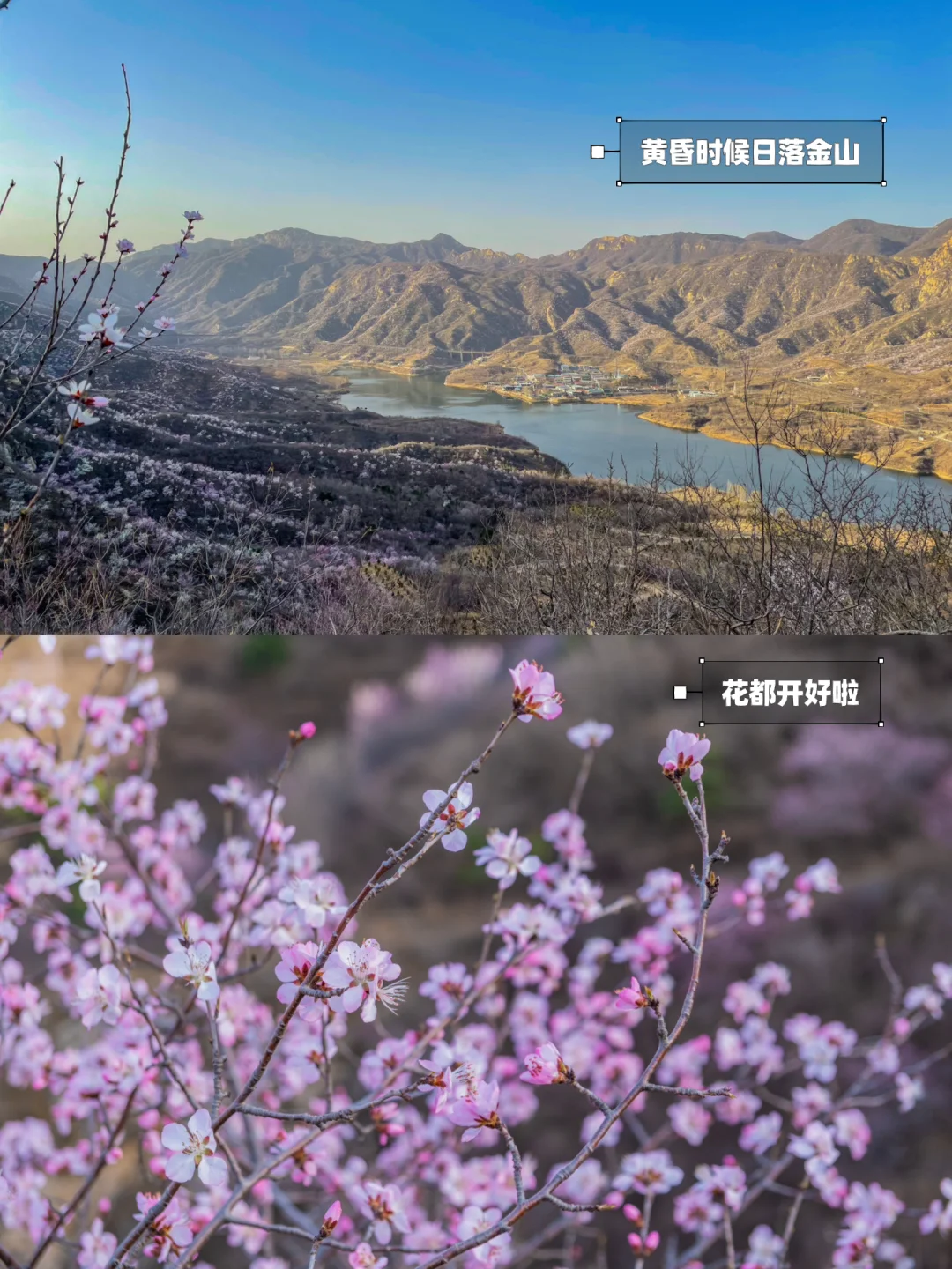 周末露营发现了一处登山好去处‼️穿行在桃花山谷之中🌸感受攀爬野山的乐趣~俯瞰水库💦远望群山⛰️太美好啦🎉
