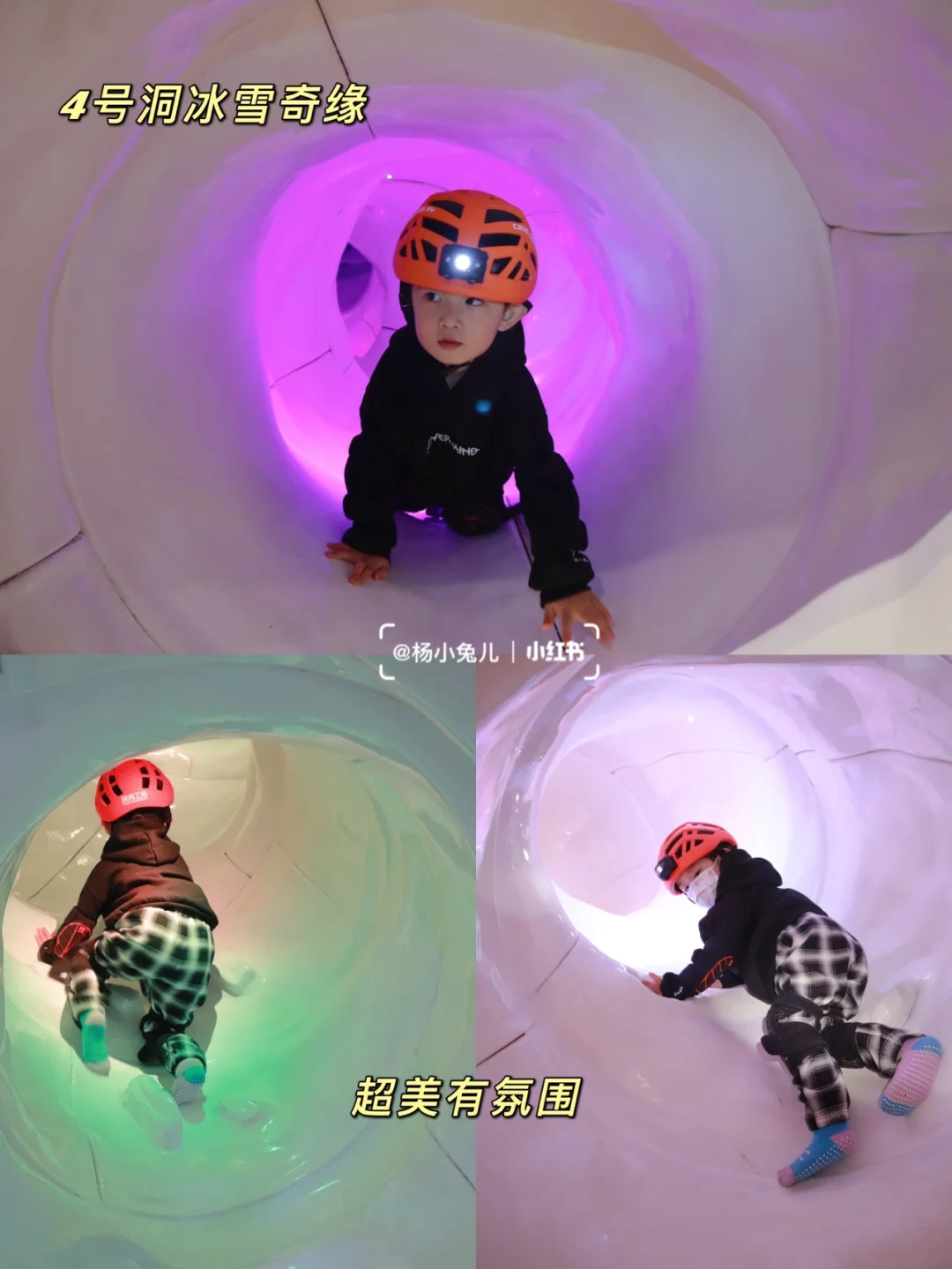 白色的洞穴泛着七彩的光,会掉进海洋球池里越过“海洋”穿过“冰川”。这个也是体验洞穴,很美很梦幻