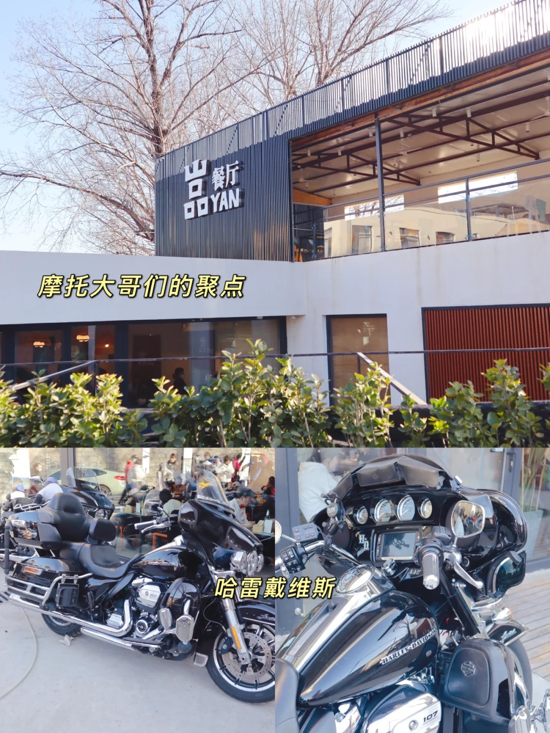 怀柔后山是有名的摩托车跑山的地方⛰这里是摩托大哥们的聚点,门口挺着好几辆特别酷的摩托车🏍包括有名的哈雷戴维斯摩托车,启动起来那声浪,太炸街了✨