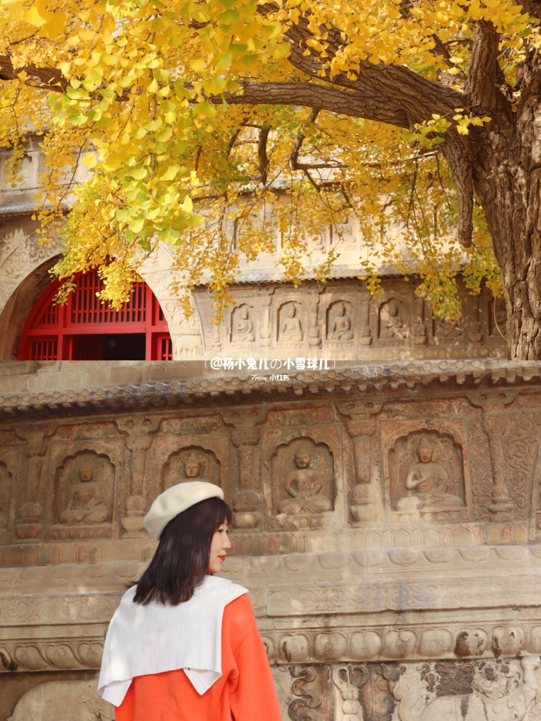 五塔寺现在因东南亚风寺庙而出圈,上面雕刻着四面石佛,与两侧600年的古银杏树在阳光的照射下古风肆溢,氛围感满满。