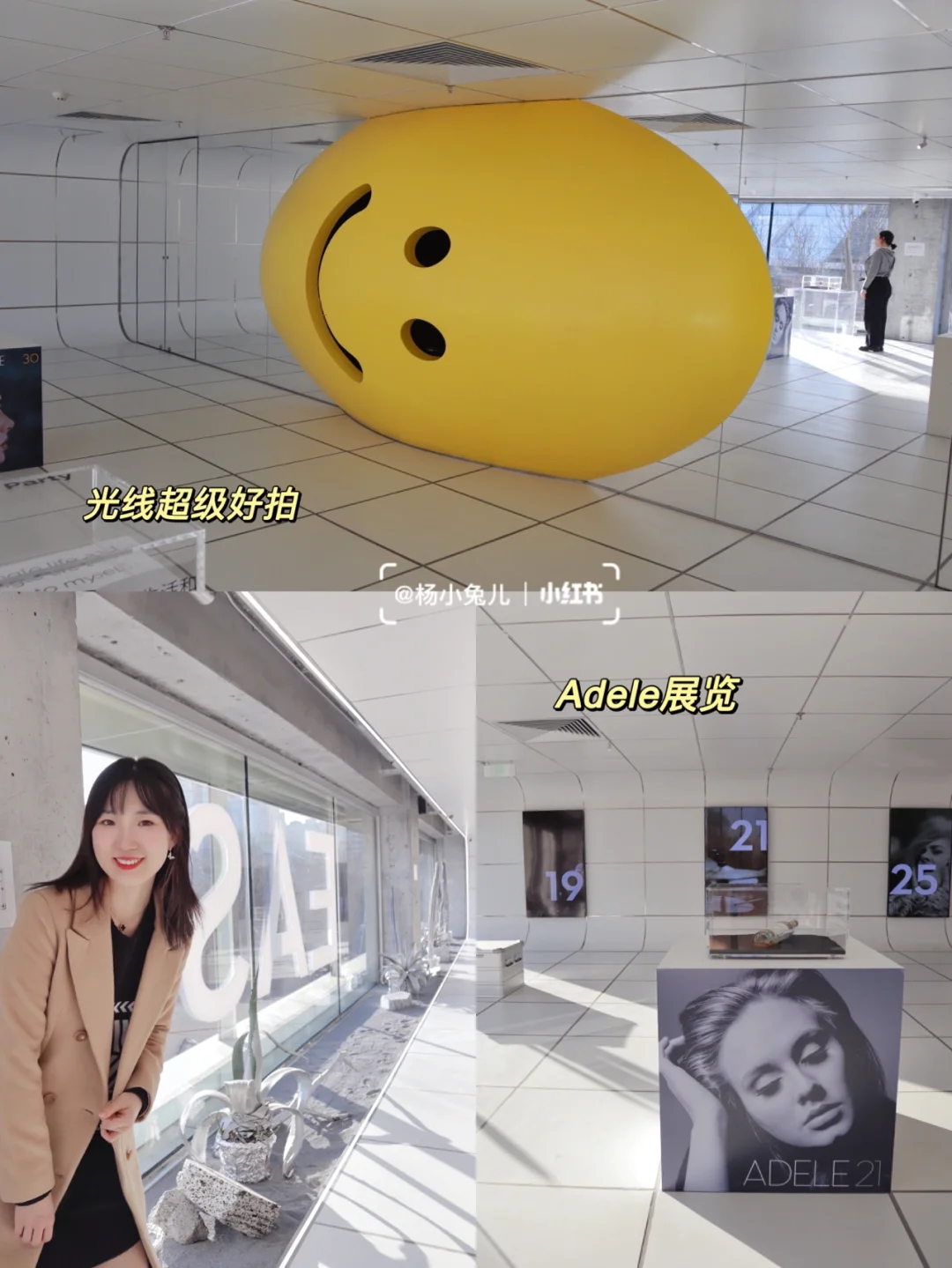 ▫️二层&四层是Adele的沉浸艺术展🪑,二层主要展出了她出道以来重要时间节点的唱片、个人物品和曾说的经典的话。三里屯标志性的大黄蛋🟡就在这层。