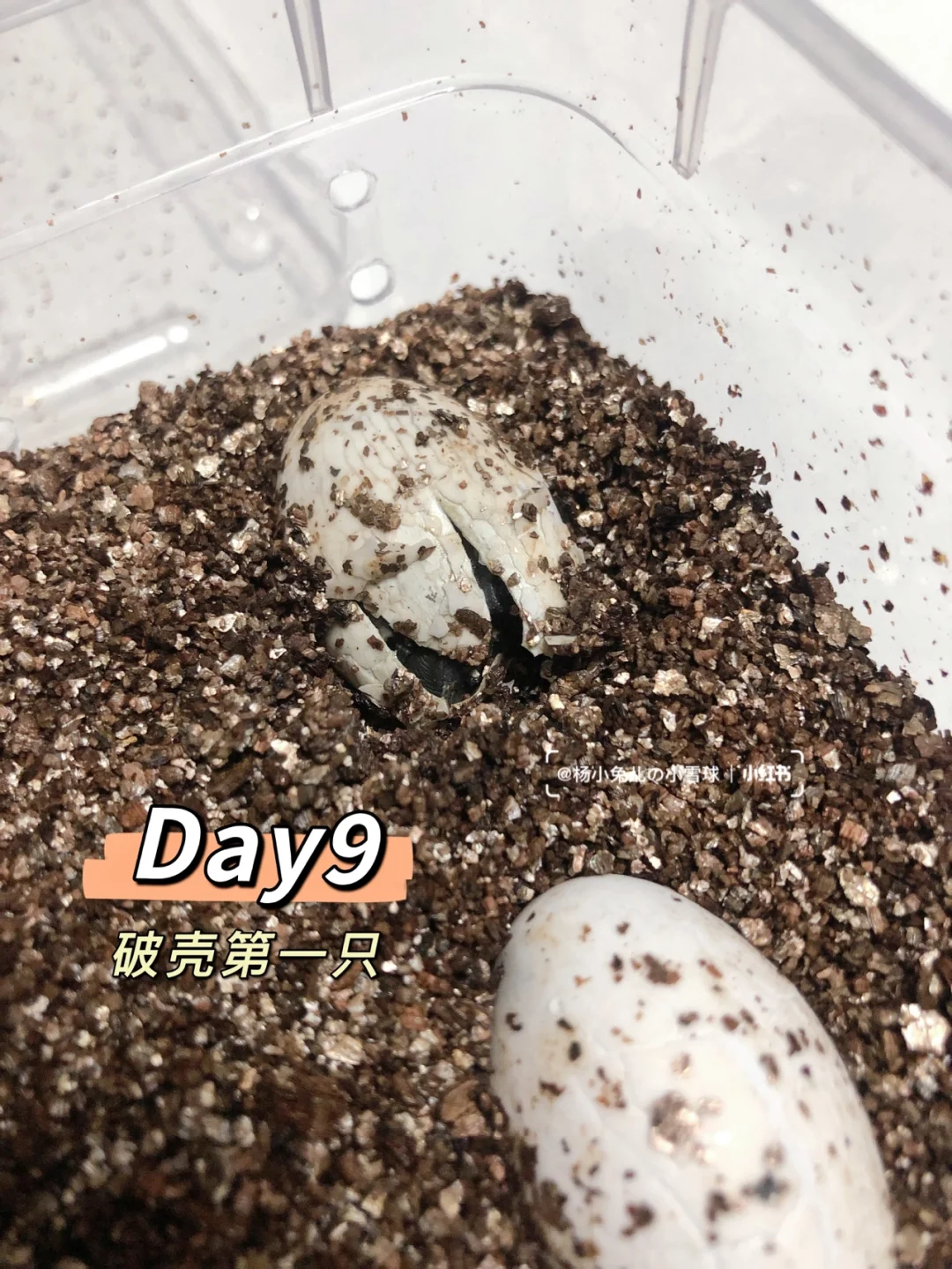 4️⃣破壳以后不要动他不要即刻下水,让他活动三天,待肚脐长好就能下水了,再过两天可以喂食龟粮。