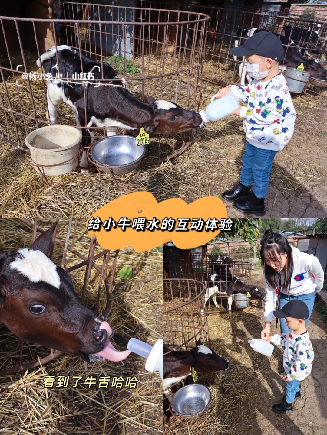 4️⃣蕞期待的就是喂小牛的环节啦,小朋友领一个小水壶,找到一头自己喜欢的小牛,就可以体验啦,小朋友很兴奋。