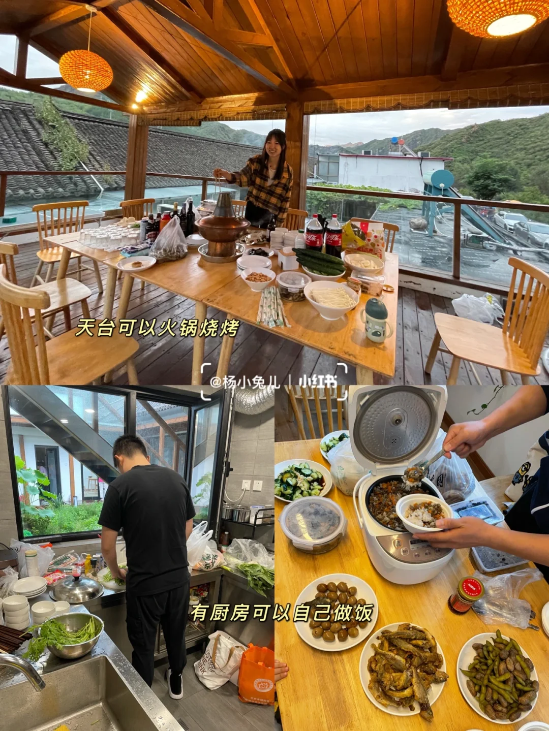吃是大事儿,老 板这里提供烤炉烤架,老北京铜锅,厨房里面厨具和基本的调料油都是备好的,所以可以发挥的空间很大,我们五家人买了海鲜,带了涮肉和烤串,三顿饭全解 决🥘