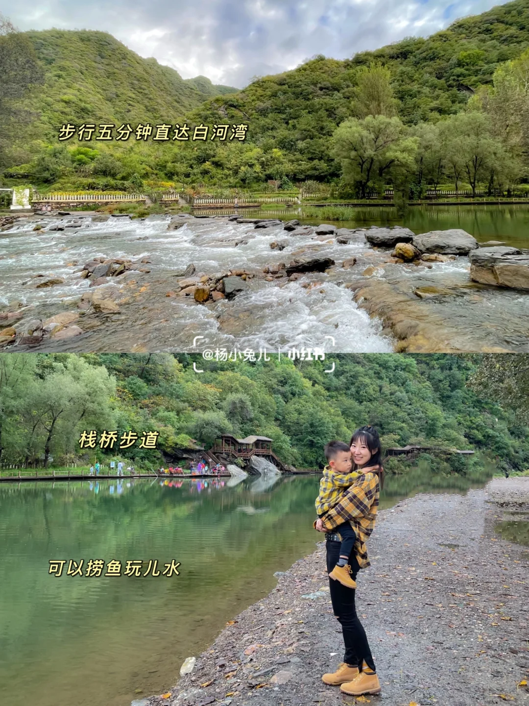 这个民宿挨着白河湾的支流,所以一路上来可以看到好多玩儿水钓鱼的浅滩,可以扎帐篷野餐,从民宿出来五分钟即达,远点的开车十分钟以内也可以到了。