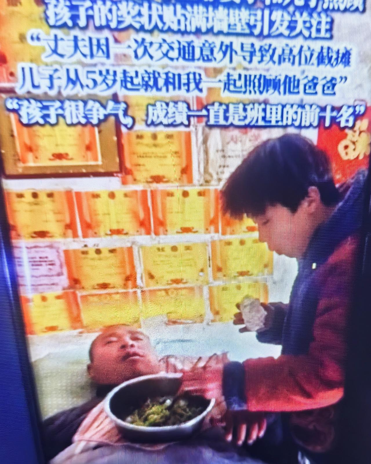 奖状糊墙,撑起截瘫父亲的天 走进河南周口这间略显老旧的屋子,墙壁是最触目惊心的风景——层层叠叠、几乎糊满墙的奖状,像一片金灿灿的铠甲。每一张“第一名”、“优秀学生”的背后,是一个家庭被苦难淬炼了十余年的脊梁。 十余年前,一场突如其来的交通事故,让这个家庭的顶梁柱轰然倒下,高位截瘫。生活的重担,顷刻压在了妻子和当时尚且年幼的儿子肩上。妻子咬紧牙关,在孩子不用上学的间隙,去周围打点零工,换取微薄的生活费。而儿子,用尚显稚嫩的肩膀,早早扛起了照顾父亲的责任。 “孩子很争气,成绩一直是班级前十名。”母亲这句话说得平淡,却让听者心头发酸。没人知道,这个前十名,是他在给父亲翻身、擦洗、喂饭的间隙,趴在床头一笔一划拼出来的;没人知道,一面墙的辉煌,需要多少深夜的灯火来映照。苦难没有让他低头,反而成了他向上的阶梯。他用最干净的笑容和最优异的成绩,默默修补着这个破碎的家。 邻居们总说,这孩子眼里有光。那光,源于苦难深处开出的花,源于墙上一张张“糊”起来的希望。这间用奖状“糊”墙的屋子很旧,但里面住着的人,灵魂崭新而挺拔。他们或许被命运夺走了很多,却亲手用爱与坚韧,筑起了最坚固的城池。