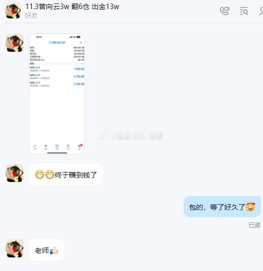 春来我不先开口,哪个虫儿敢作声。老方实盘喜讯分享 恭喜实盘小云拿下周初第一单开门红收益,17080美金顺利到位,行情还在持续增值,我们的盈利也在扩大交易其实大部分时间就是等待,等市场犯错误,等属于自己的高概率机会。按系统操作,剩下的交给市场即可。兄弟们多头还在持续,我们继续持好,坚定上看金价现货黄金金油趋势实战大师-老方