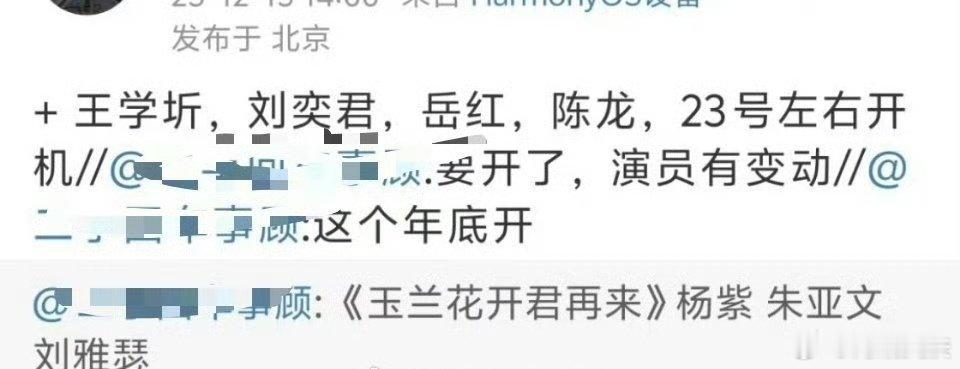 12月15日,杨紫《玉兰花开君再来》即将开机,凌晨突然有消息传出男主还是老吴!