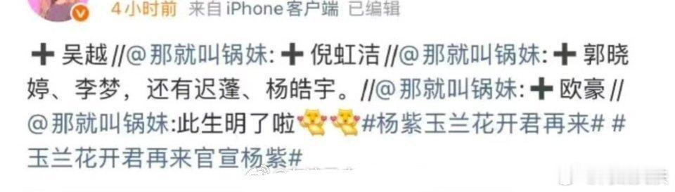 杨紫《玉兰花开君再来》有两个完全不同阵容的🍉版本版本一:杨紫,欧豪,郭晓婷,李
