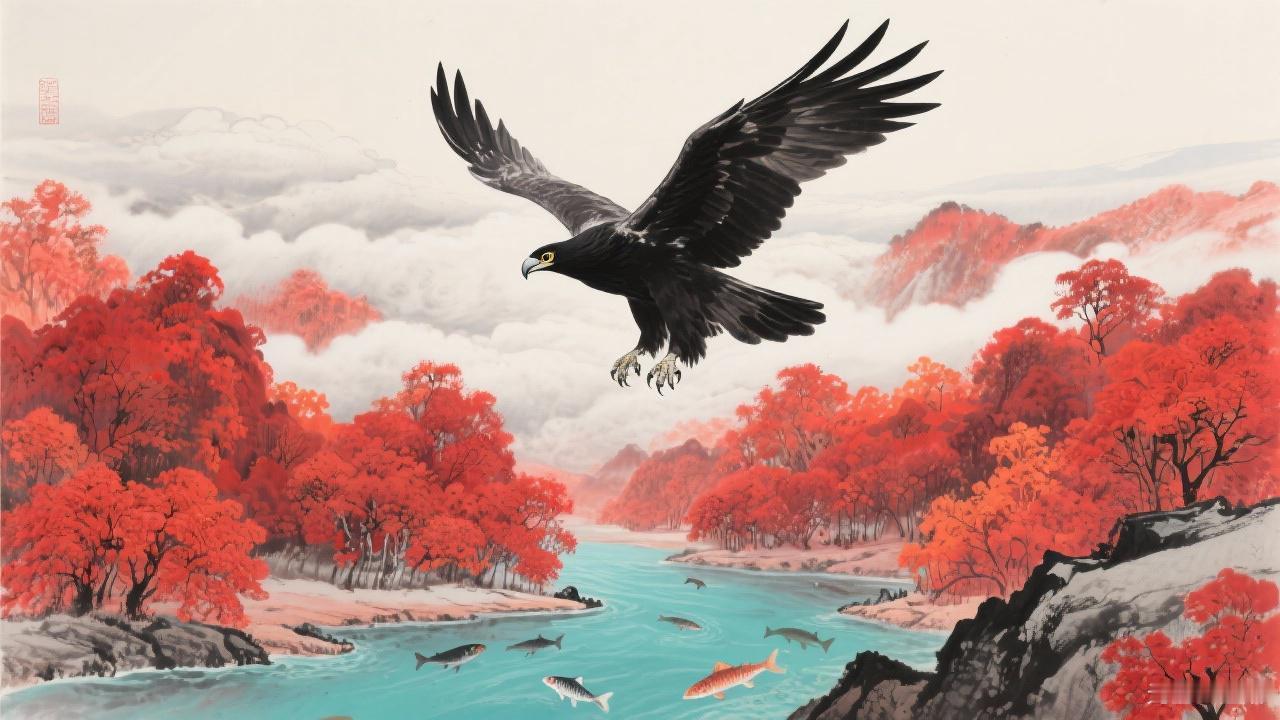 这ai是越来越牛了!看万山红遍,层林尽染,漫江碧透,百舸争流,鹰击长空,鱼翔浅底