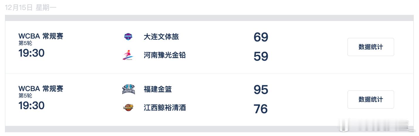 【WCBA今日综述:大连文体旅保持不败金身 福建金篮迎赛季首胜】2025-26赛季WCBA常规赛今日精彩继续,今天只有两场B组的比赛,其中大连女篮战胜河南女篮,继续保持不败战绩,取得新赛季5连胜,领跑B组积分榜。前四轮均为四连败的福建金篮和江西女篮今日迎来对决,最终福建金篮获得新赛季首胜。探营WCBA球队 【B组】 大连文体旅 69-59 河南豫光金铅,大连女篮两名外援得分上双,阿伦25分17篮板,库珀19分。河南女篮三人得分上双,法格本勒18分6篮板,邓睿洁16分7篮板,马文15分7篮板。 福建金篮 95-76 江西鲸裕清酒,福建金篮首发五人全部得分上双,埃吉奥福32分22篮板,谭如梦29分5助攻,黄豆12分7篮板,陈可蕊10分10篮板,王欣洋10分6篮板。江西女篮三人得分上双,杨珂菁21分5助攻,许艳雪17分,张瀞丹12分。