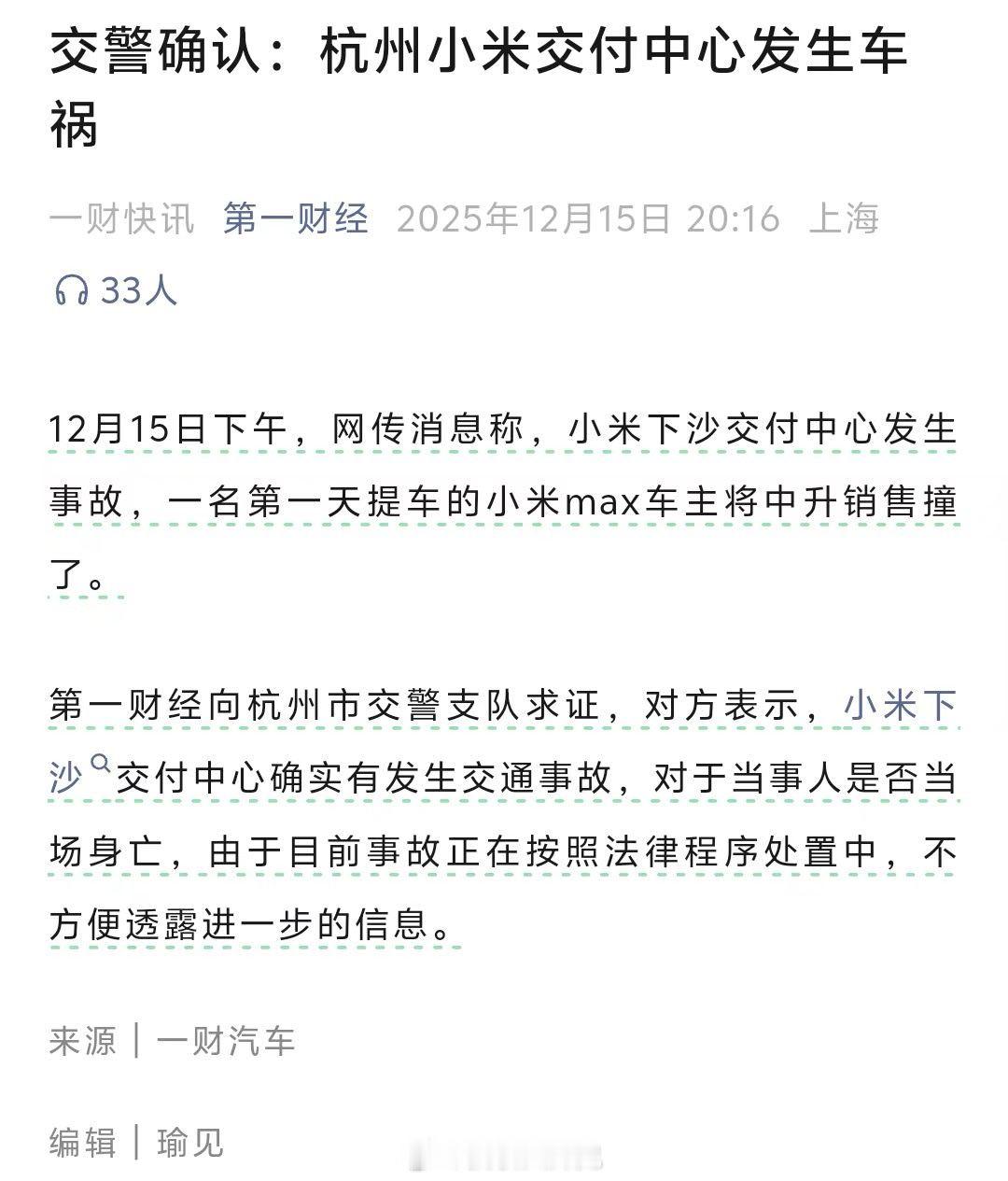 交警确认杭州小米交付中心发生车祸小米怎么总跑到风口浪尖上