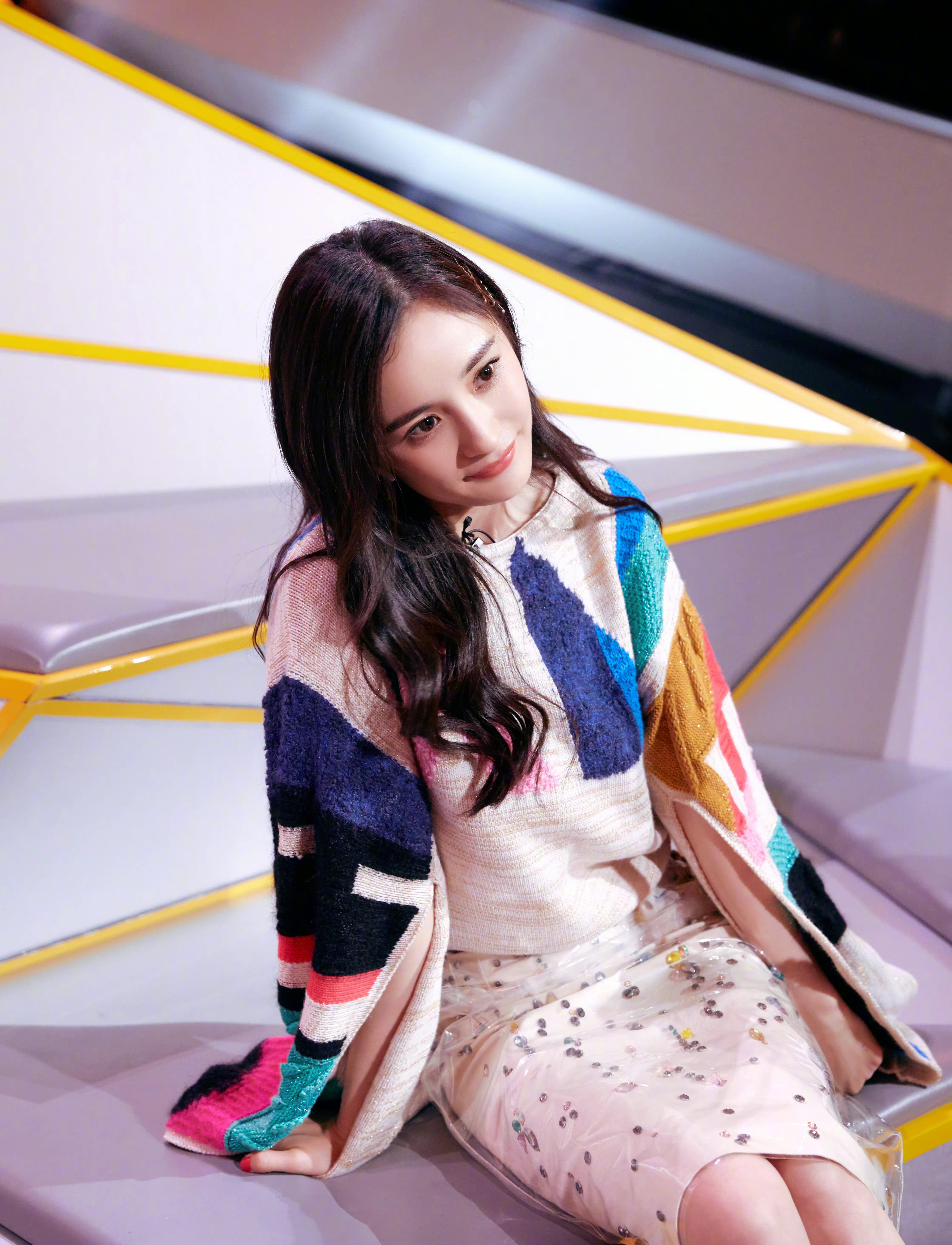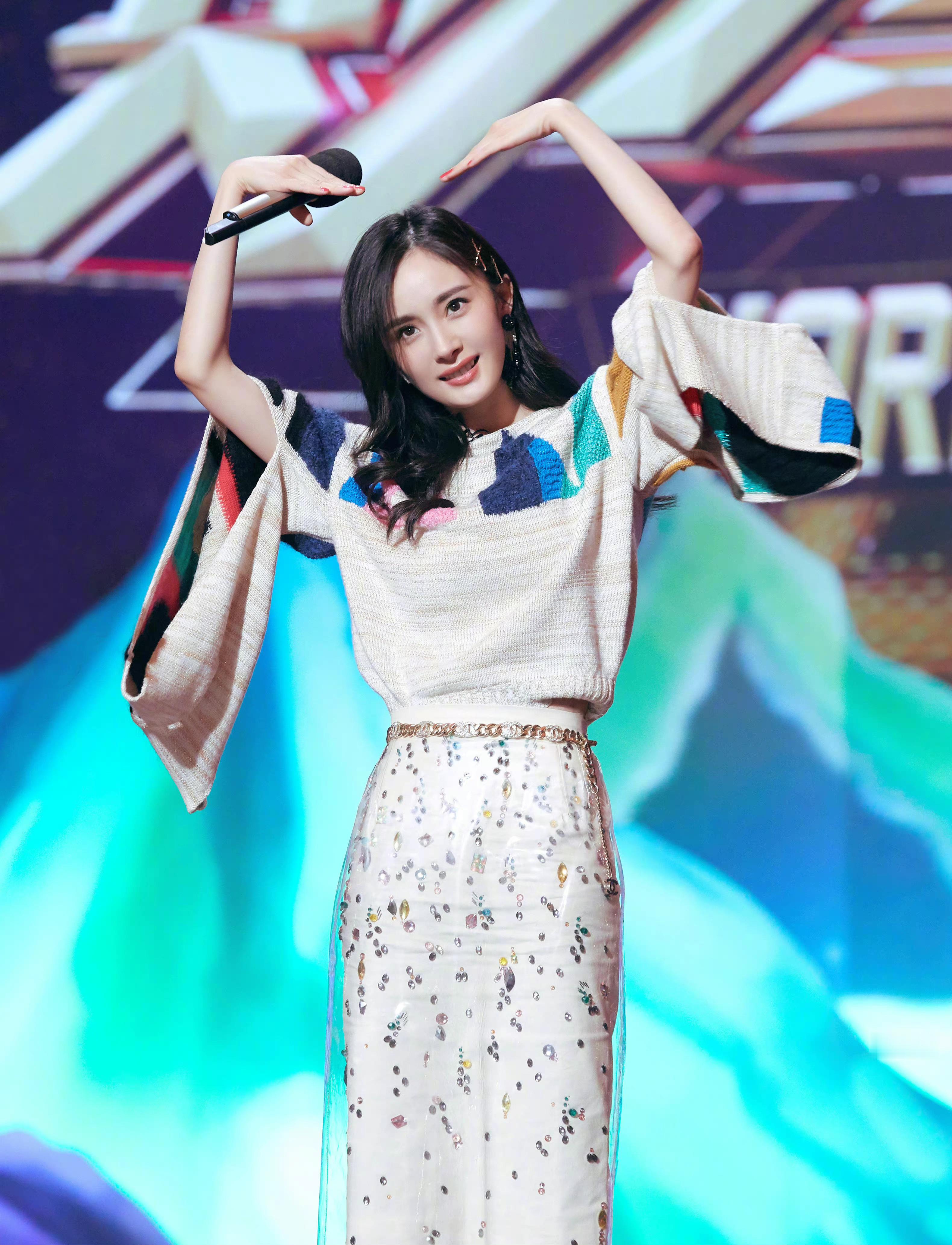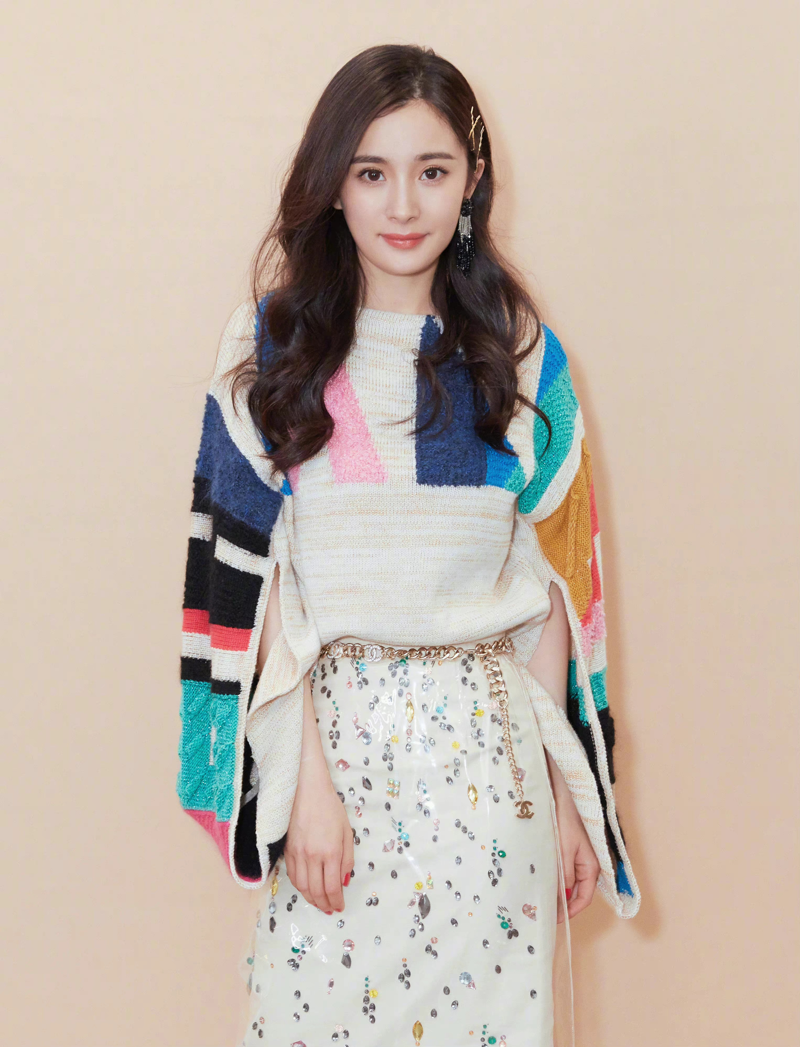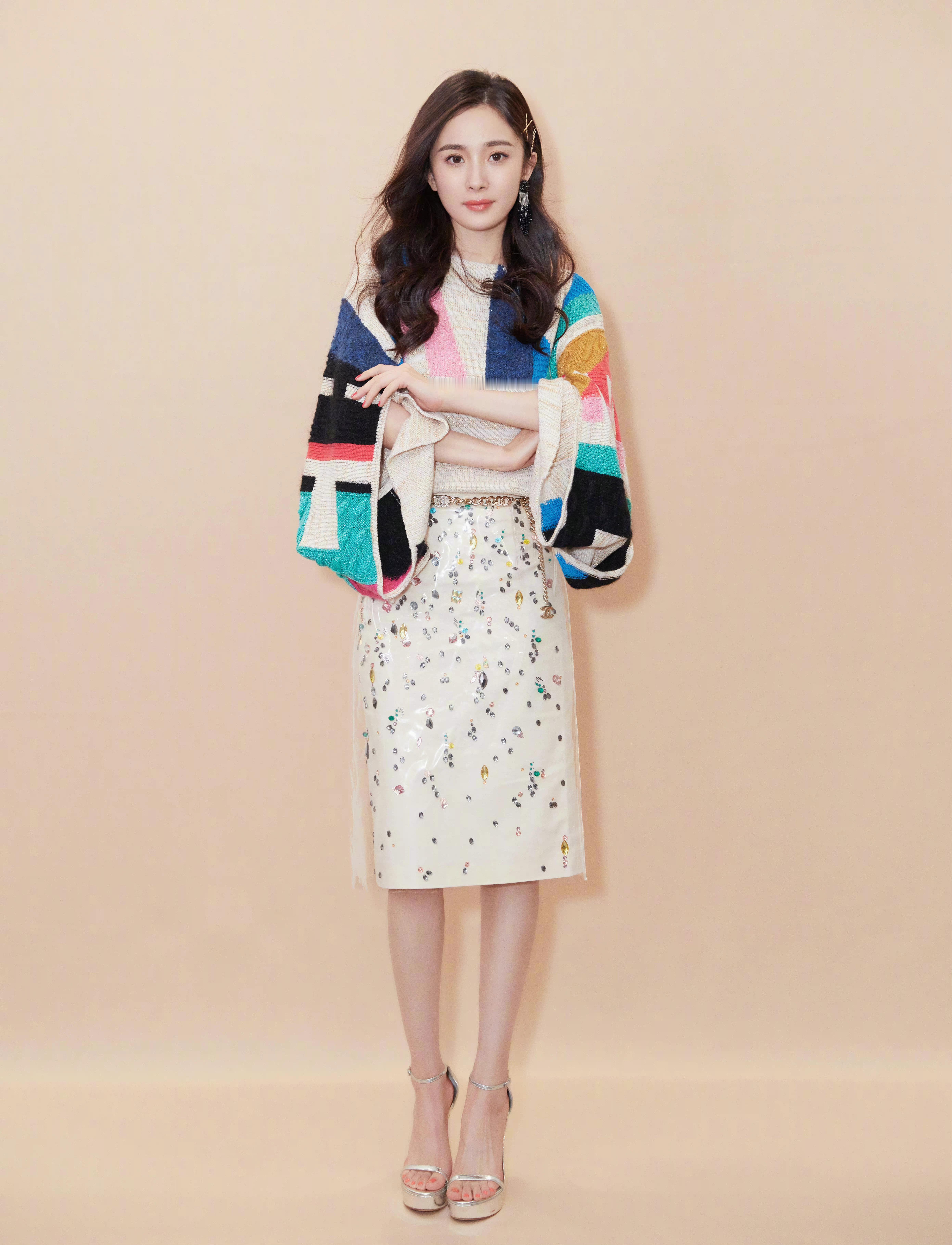 杨幂姐姐,彩虹色彩穿搭,魅力满满。杨幂