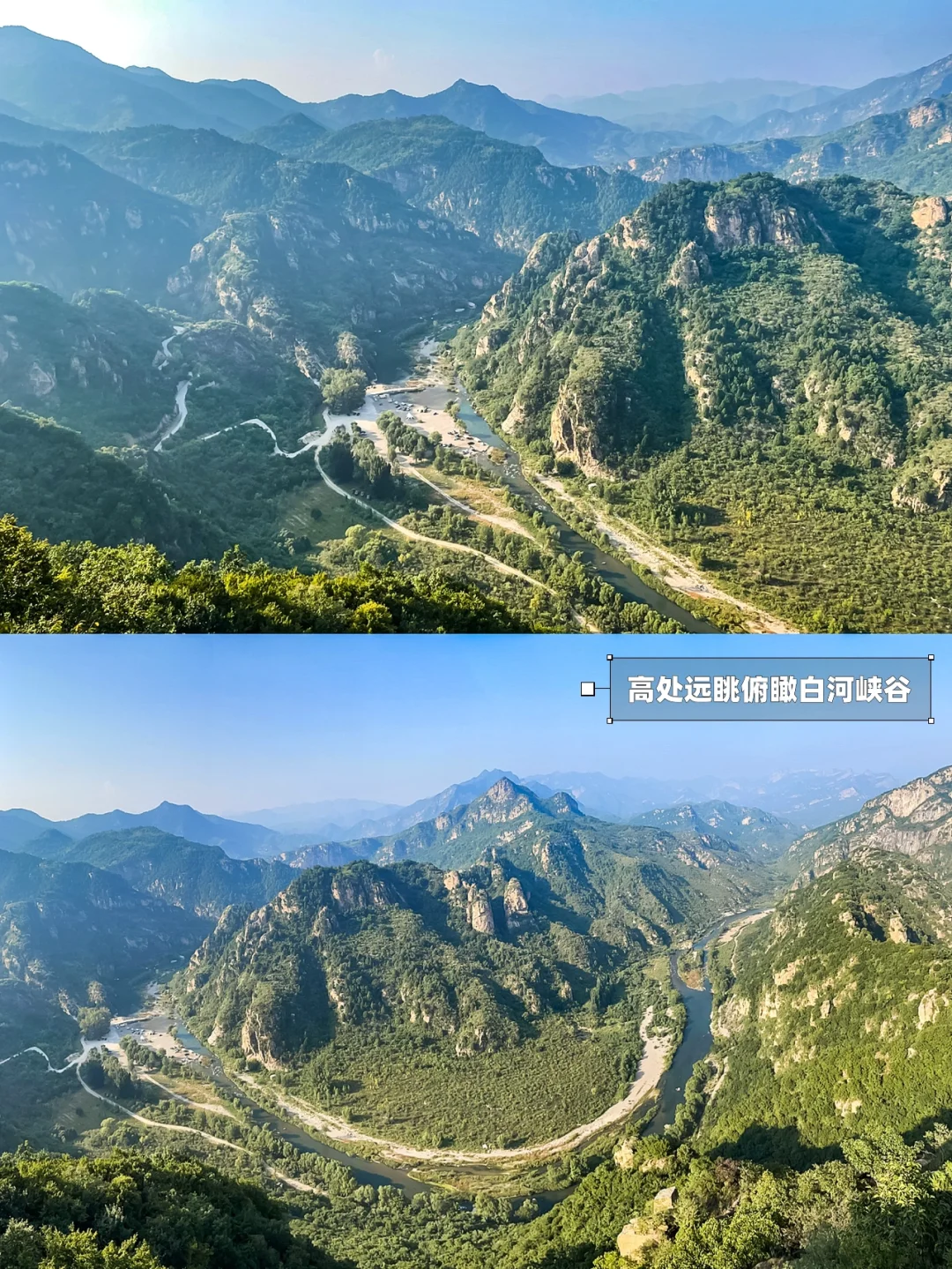 这条河是怀柔有名的白河,白河在峡谷中蜿蜒曲折,从山顶俯瞰真的是太美了❗️而这一切美景得来的毫不费力,因为开车可以上到山顶‼️
