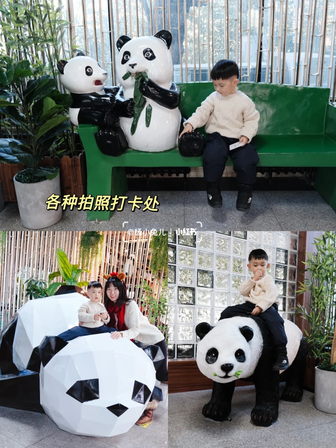 🔸有各种各样造型的熊猫可以拍照打卡,有整面的熊猫装饰墙,门口还有个巨型熊猫,怎么拍都好看☺️。