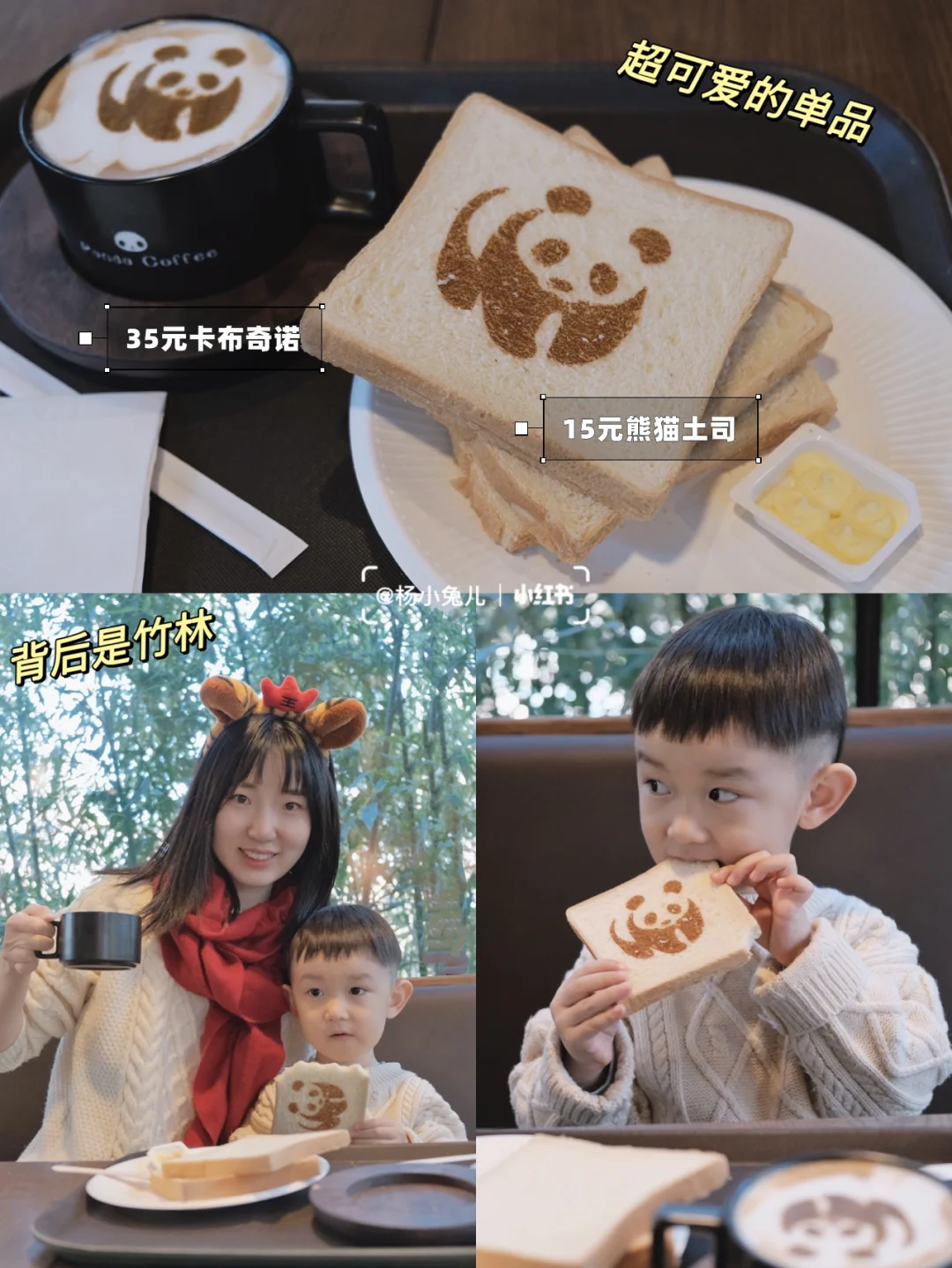 🔹这里的食物和饮品大多都有熊猫造型🐼,我点了一杯熊猫卡布奇诺/35元,小雪球要了一份熊猫吐司/15元,只可惜三片吐司只有上面的一个有烤熊猫,下面两个都是白的,有点小失望😂。