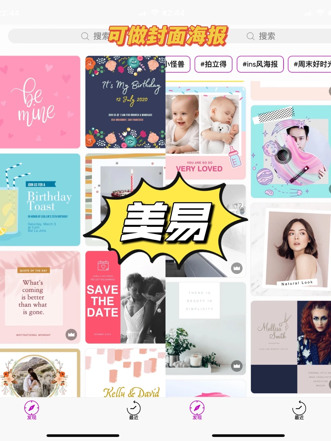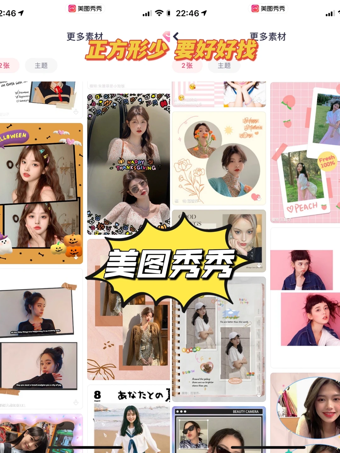 🔖【美图秀秀】可基础拼图,海报模板比较丰富,但是不能选比例,只能自己慢慢找