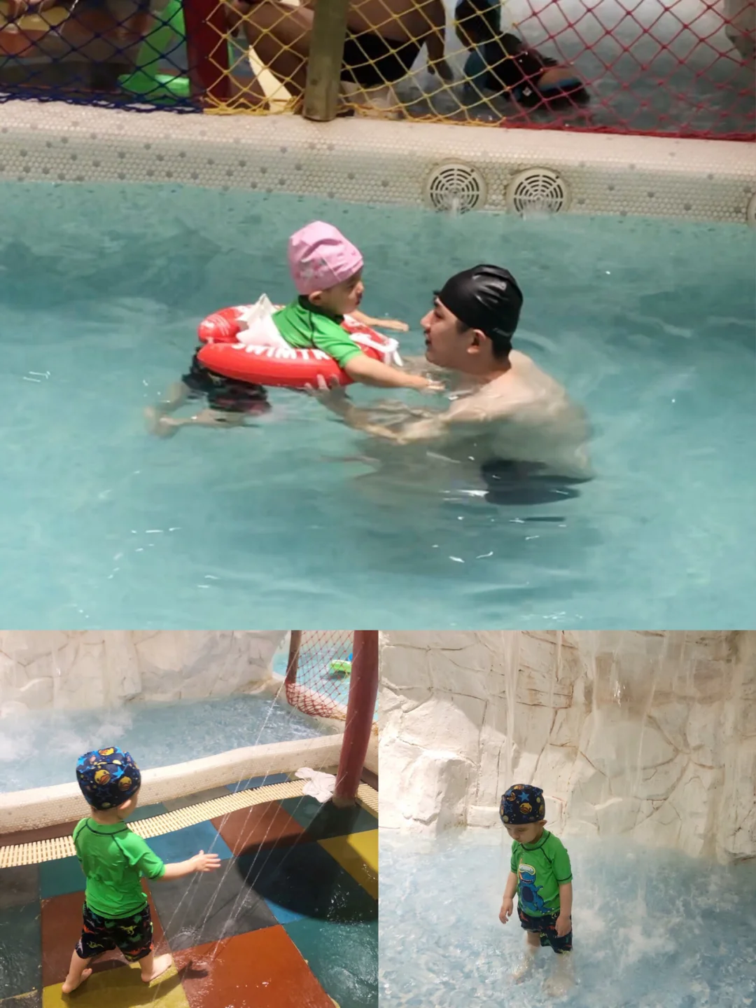全天不限次数出入,省钱攻略:可以一大一小买两张票,上午妈妈陪下午爸爸陪,拿同一个手牌刷进去就行了。必须带泳帽(这也有卖的),有游泳圈可以租,如果家里有可以自备带过去。