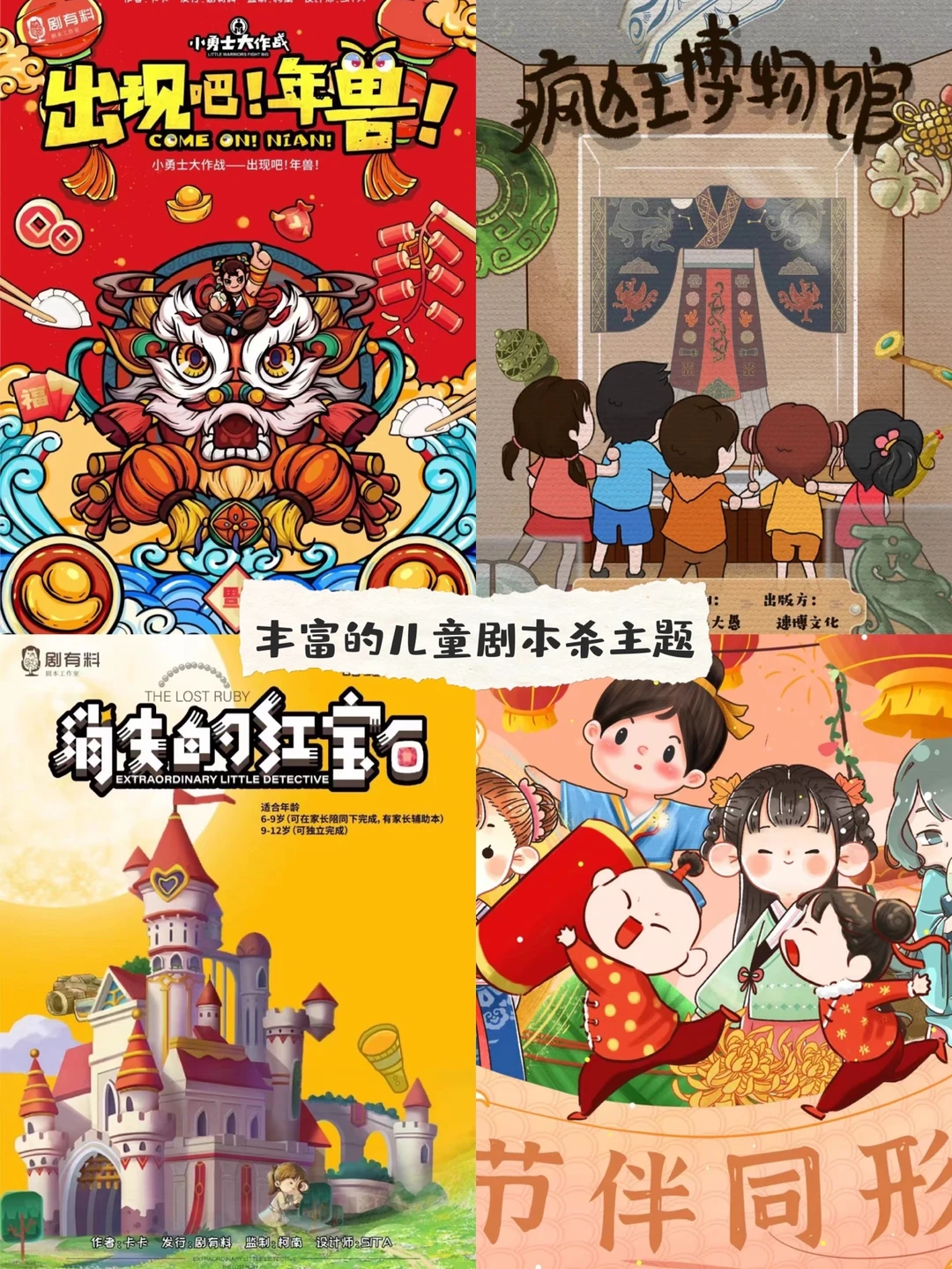 📄剧本杀适合6岁以上的小朋友,目前店里主推的有《消失的红宝石》《出现把!年兽》《疯狂博物馆》《节伴同行》四个剧本,时长在2-3小时之间⏰,有家长辅助推理也可独立进行推理。因为雪球的年龄比较小,所以这次来主要是以桌游为主👶🏻
