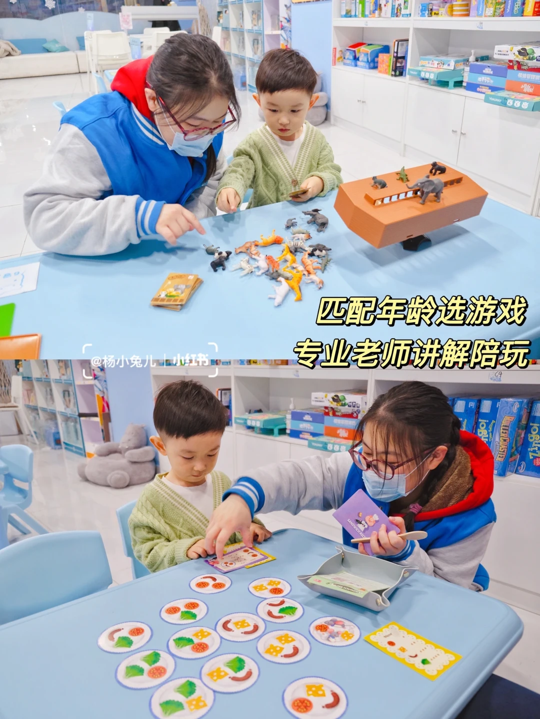 这里wan美的解决了家长不知道陪孩子玩儿什么游戏的烦恼‼️有专门的老师按照年龄和认知程度匹配合适的游戏给小朋友,讲解具体玩法,还会和小朋友一起进行游戏🙋🏻♀️。一个小时的时间雪球玩了6种不同的桌游,锻炼观察、认知、动手、推理能力等✔️,在玩儿的过程中“鸡娃”,小朋友们也开心的不想回家✌🏻