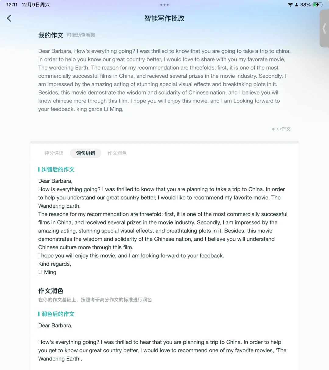 •最近怎么样?得知你将要来中国旅行,我感到非常兴奋。为了帮助你更好地了解我们伟大的国家,我很想和你分享我最喜欢的电影《流浪地球》。