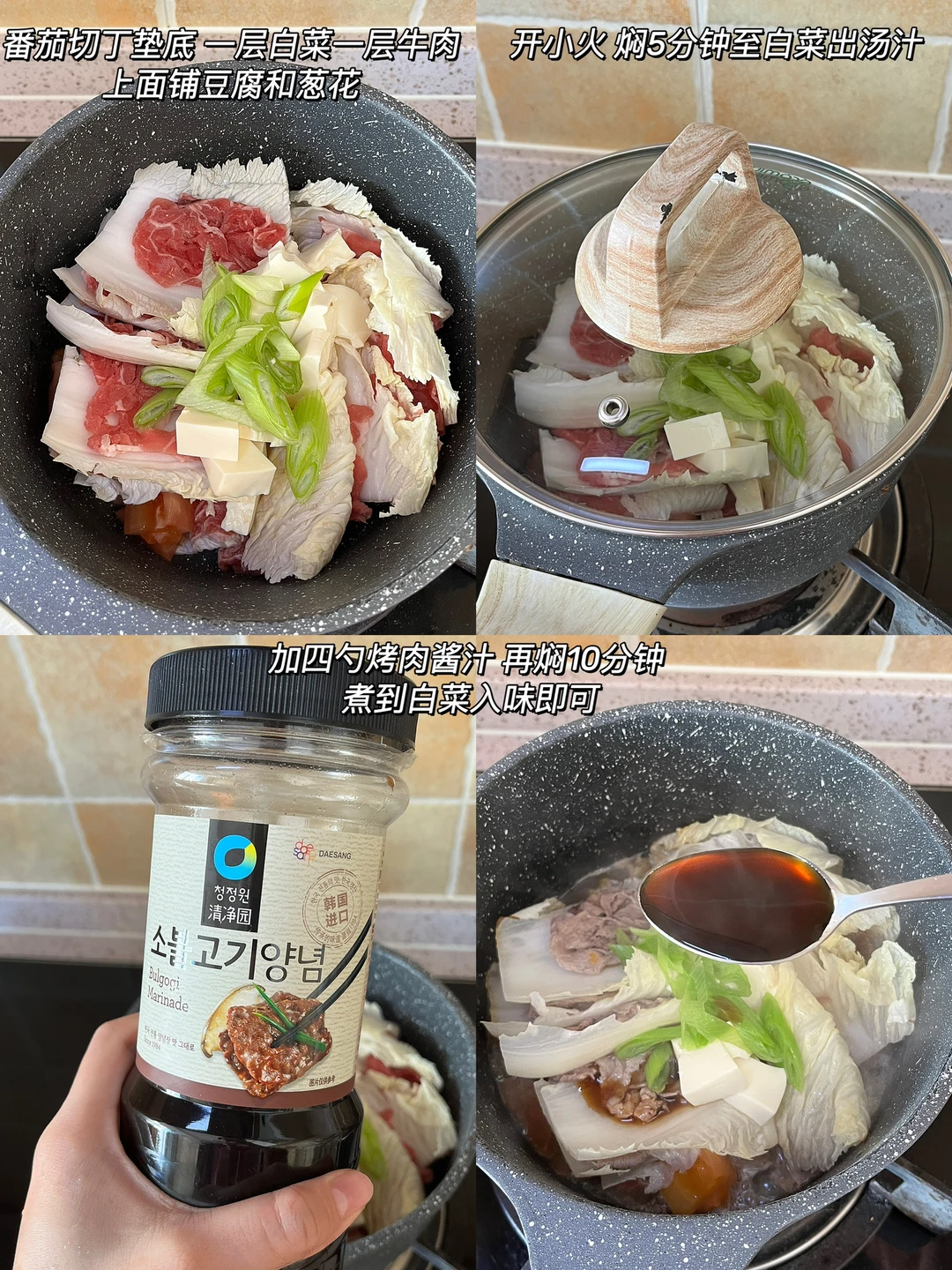 ❷白菜焖出汤水后加韩式烤肉汁4勺