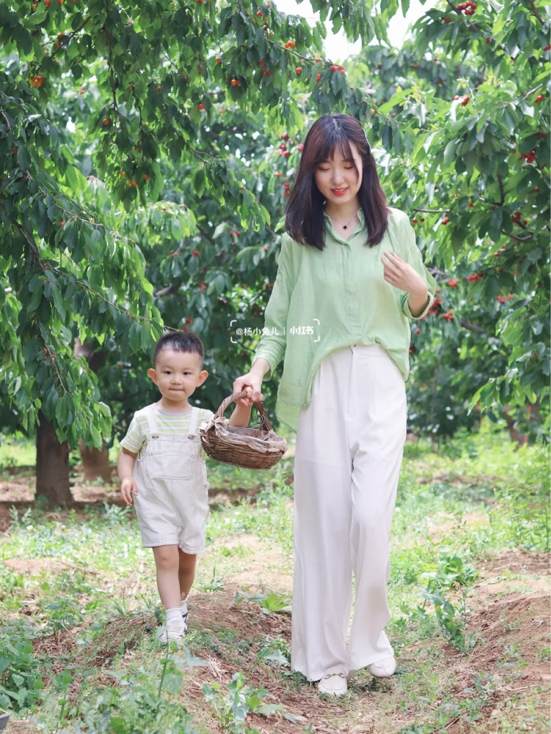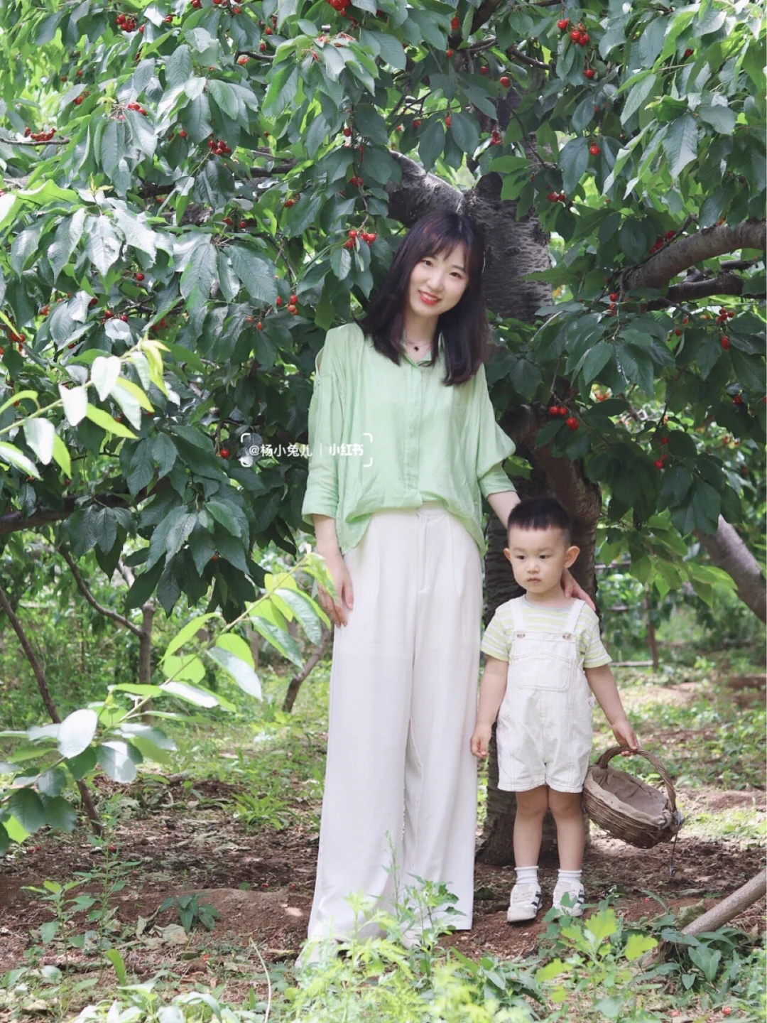 北京遛娃|北京周末去哪儿|北京近郊|北京采摘|樱桃采摘|昌平采摘|亲子穿搭|绿色搭配|亲子装|夏天穿搭|ootd