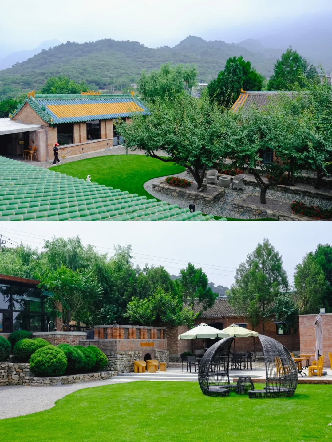 🛎叮叮,在京郊怀柔的北沟村,做落在慕田峪长城脚下藏着一家蕞美的乡村遗产酒店。由琉璃瓦厂改建的这家民宿保留了红砖绿瓦的特征,加上现代感元素,是视觉冲击,也是美好享受,斩获无数建筑类大奖