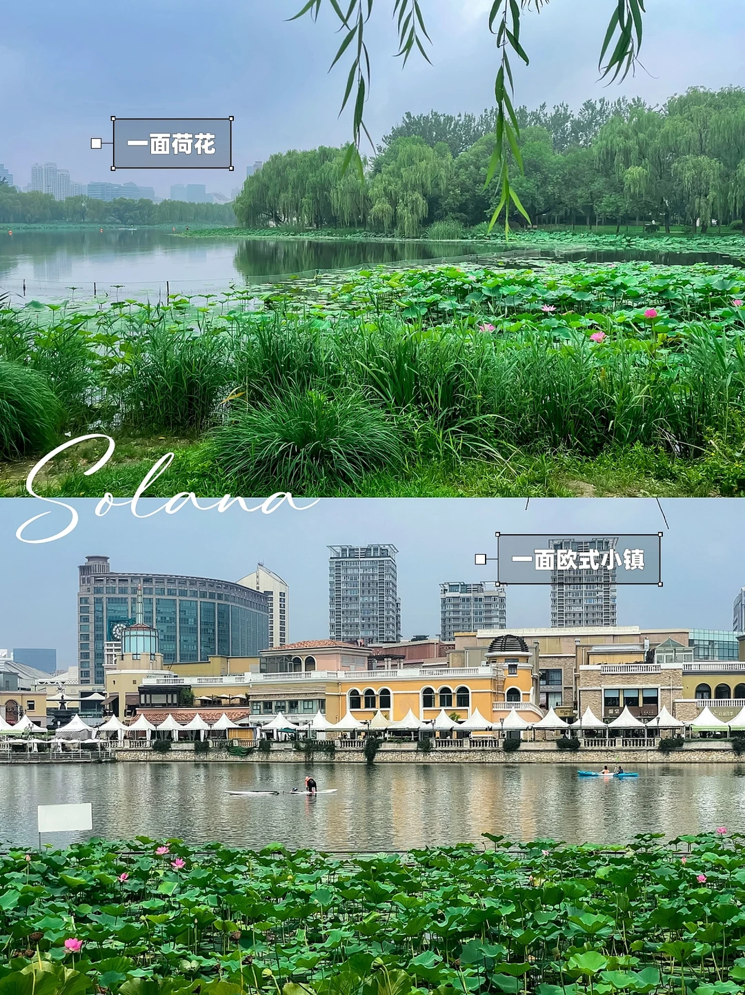 ✔️美景做伴:链接朝阳公园和蓝色港湾,一面是绿树荷花,一面是欧式小镇,一次打卡两种景色