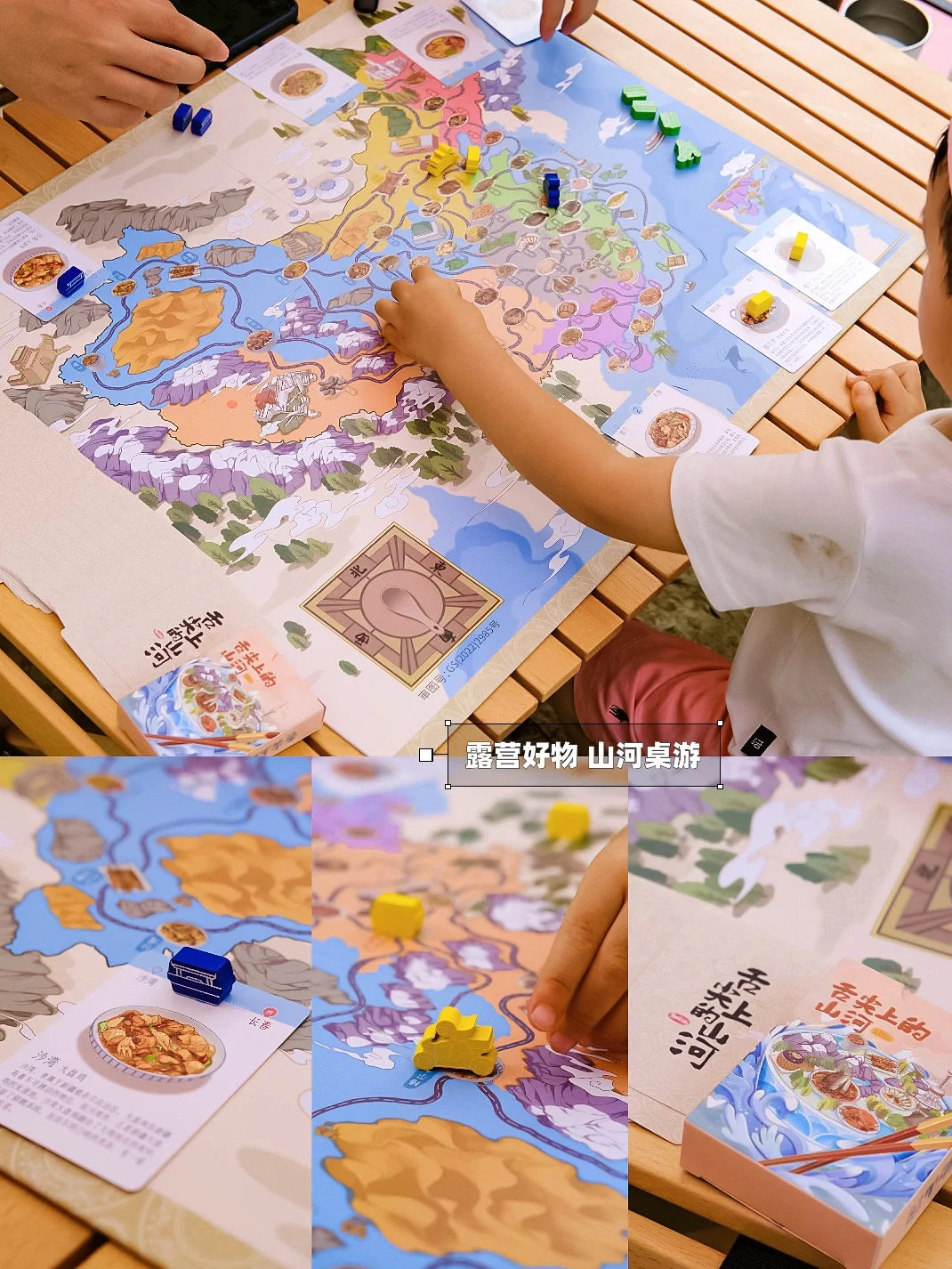 亲子露营,我还会带上一家人都能玩在一起的桌游,这次准备的是舌尖上的山河。在午后的时光里,一起徜徉在大好河山中,体验一场美食与文化的旅行🎉。雪球乐此不疲地扮演着“快递员”的角色,把美味送到送到各地。比如将北京的烤鸭运到乌鲁木齐,乌鲁木齐的烤羊肉串又送往哈尔滨,来回往返的游戏,一座城市,一种饮食,一种文化,被我们一一发现😝。我们的生活不只有北京的城市,还有全国的大好河山呀。那些我还没带雪球到达的地方,就先从这里开启吧~