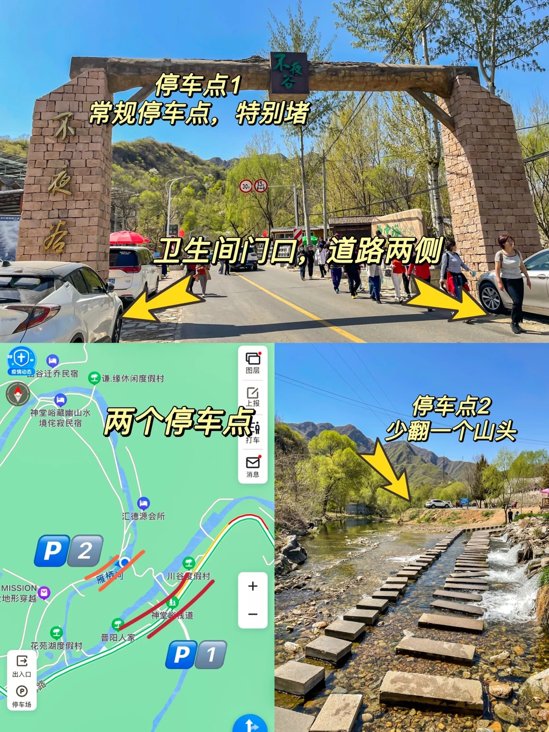 〰️其次,导航到大门的地方有个大石头写着“神堂峪”三个字,对面只有卫生间门口和道路两侧可以停车,20辆左右。