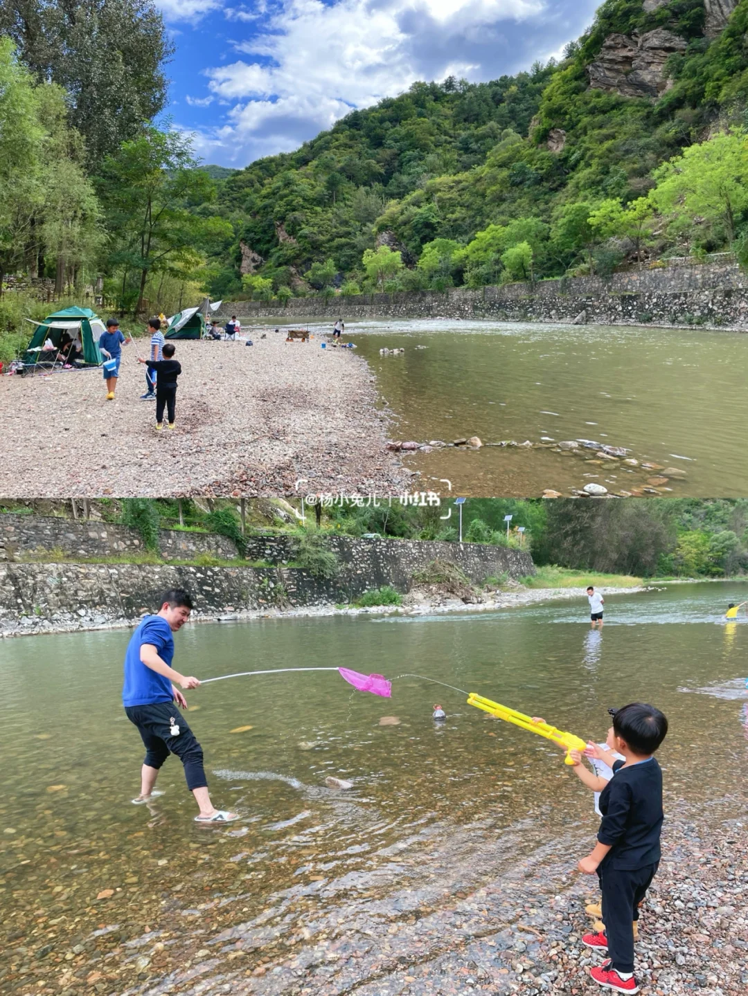 两山夹一沟的地势,可以在山里河间体验徒步,线路都是沿河而行,全长7公里。可以捞鱼玩水,也可以看到奇峰怪石和慕田峪长城。