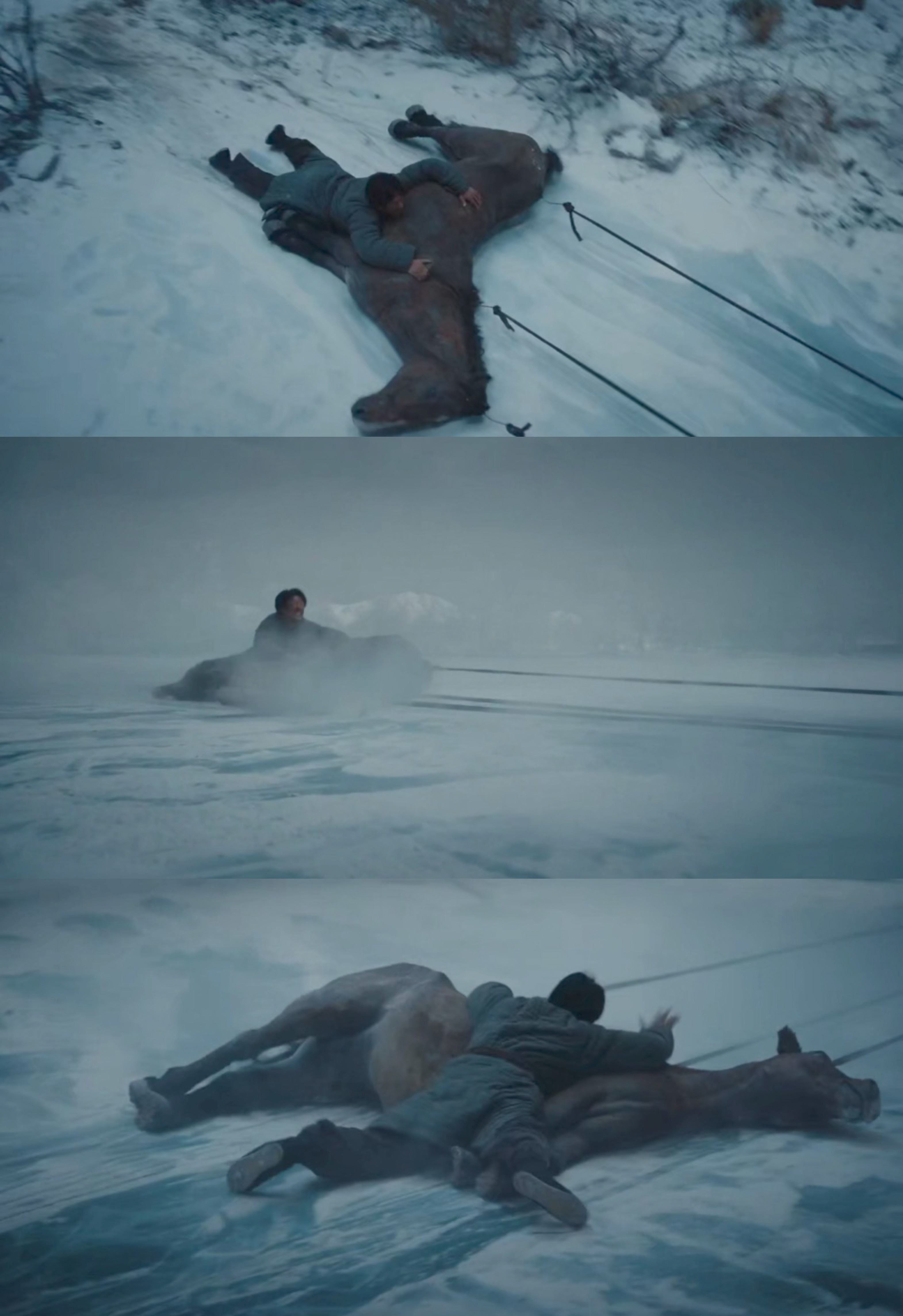 好剧真的应该被更多人看到!反人类暴行沉痛但不压抑,冷静克制地把最震撼的情感表达出来,尤其是佟长富连人带马被拖进血窟,镜头切全景之后是雪地中的血窟,而佟长富在挣扎,名场面第一集就出来了,色彩对比和镜头隐喻简直看得人头皮一紧!年末好剧真的值得一品!